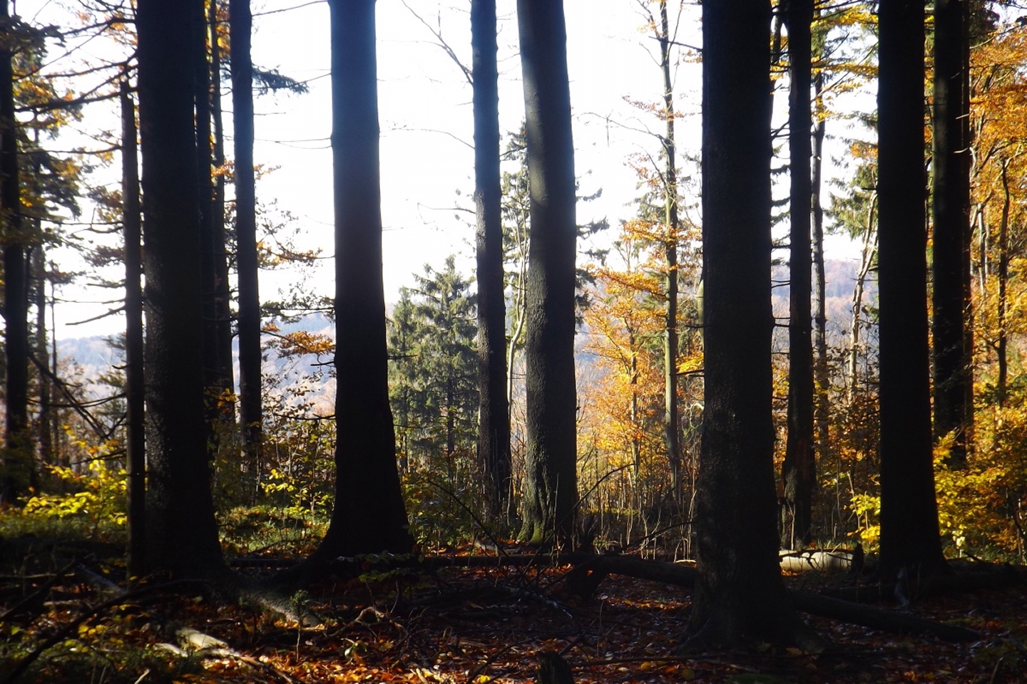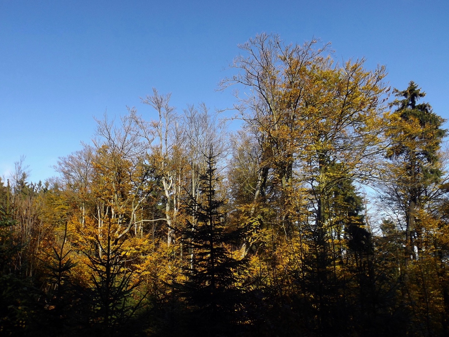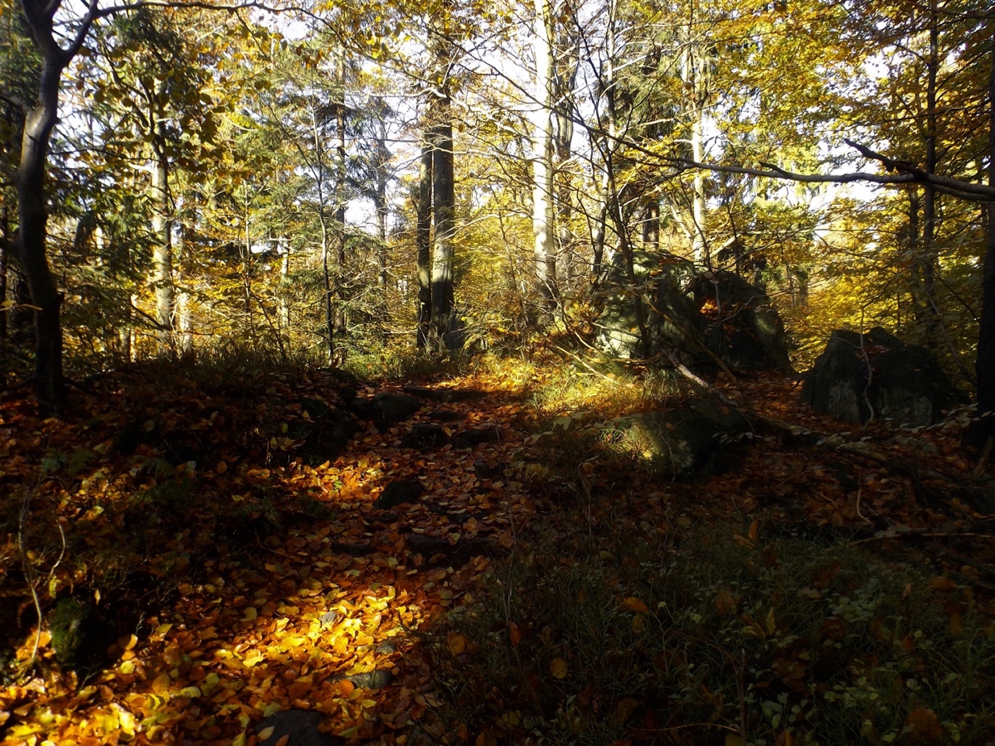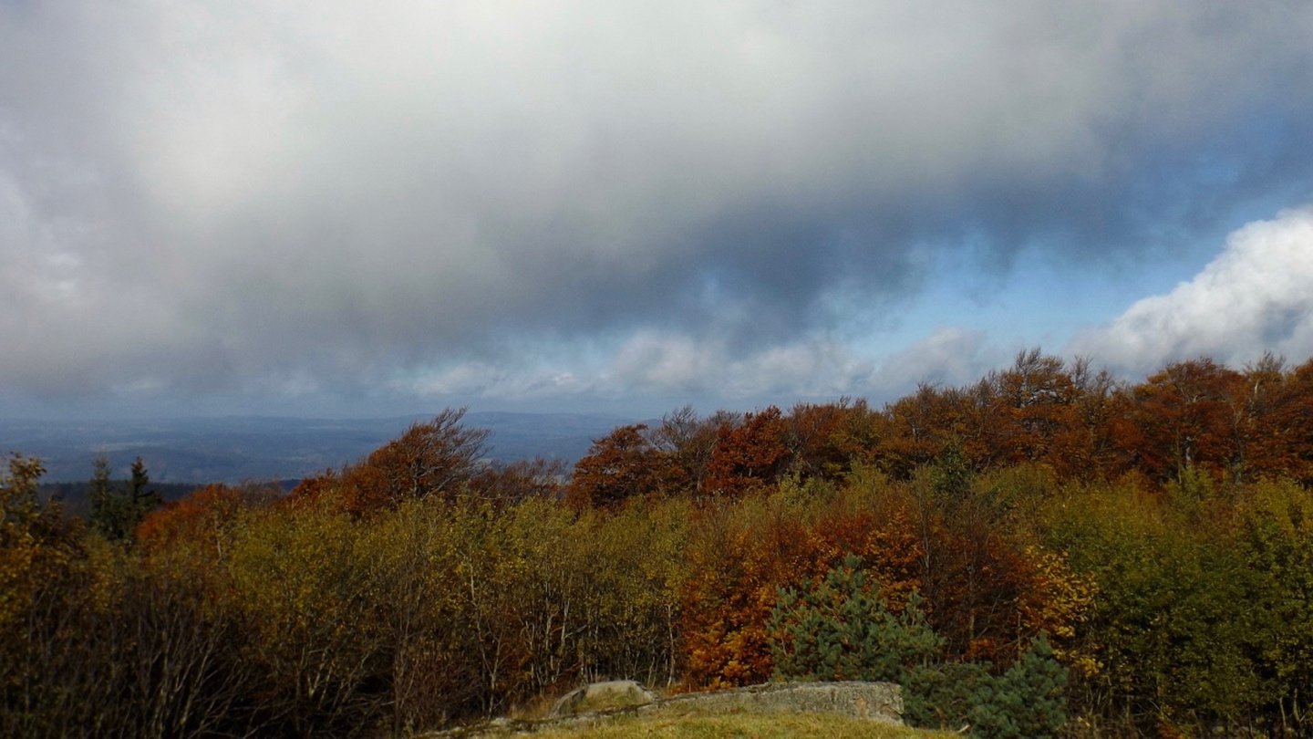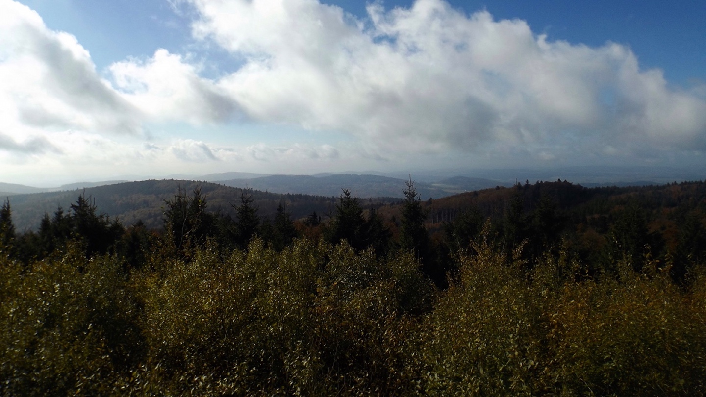 Ich startete nicht beim Restaurace U Mlynáre, sondern in der Ortsmitte, weil ich damit erstens ein paar Meter Anfahrt sparen konnte und zweitens dort ein Wegweiser mit genauer Höhenangabe steht und ich so den Höhenmesser halbwegs exakt einrichten konnte. Außerdem kam ich auf die glorreiche Idee, die Runde umzudrehen, was sich als sehr sinnvoll erweisen sollte. Denn der Aufstiegsweg über die Hanová cesta ist doch etwas anspruchsvoller als die Variante über die Plzeňská cesta. Ich folgte also der gelben Markierung von der Ortsmitte hinunter zur Teplá Bystřice und dann hinauf zum Abzweig Nad Folmavou und weiter zur Česká studánka. Dieser Abschnitt ist teilweise auf Asphalt, aber auf weitaus längeren Abschnitten auf Forststraßen und am Ende auf einem angenehmen Waldsteig. An einer Gabelung muss man etwas aufpassen, weil dort der blaue Weg rechts weiterführt, während richtigerweise der gelbe Weg nach links genommen werden muss. An der Quelle rastete ich kurz und nahm das erste Birnenvierterl zu mir. Hier gibt es nämlich neben einer Überdachung für die Quelle auch ein Rastbankerl und einige nette Bräuche der Wandervereine aus Furth im Wald und Domažlice, außerdem ist die Česká studánka der Ausgangspunkt der Hanová cesta, worauf auch durch einen Stein neben dem Rastbankerl hingewiesen wird. Hatte es bis hierhin wirklich noch dauerhaft Nebel und zwischendurch sogar ein paar Minuten Nieselregen, änderte sich kurz nach der Rast das Wetter schlagartig. Es dauerte keine zwanzig Minuten und auf einmal war AKW. Kein Wölkchen über mir und nur über der Cham-Further Senke und Richtung Waldmünchen Spuren von weiß. Die Hanová cesta (deutsch Hanasteig) führt übrigens auf dem gesamten Weg bis zum Gipfel durch das Naturschutzgebiet Čerchovské Hvozdy und darf deswegen offiziell nicht verlassen werden. Stellenweise existiert sogar neben dem Weg ein Schutzzaun, um unbefugtes Betreten zu verhindern. Für mich hat es diesen nicht gebraucht, auf einem derart schönen Weg bin ich gerne geblieben. Definitiv der bisher schönste Steig auf den Čerchov, den ich gegangen bin. Eine gute Stunde nach der Quelle erreichte ich einen anderen Zaun, nämlich den immer noch bestehenden um das ehemalige Militärareal am Gipfel. Der Pfad führt hier nach rechts zum großen Einfahrtstor, welches aber heute verschlossen war. Das machte aber nicht viel, weil daneben für Fußgänger eine Lücke im Zaun ist, durch die ganz legal und ohne Hindernisse gegangen werden kann. Natürlich bedeutete das, dass weder das Bistro noch der Aussichtsturm geöffnet war, aber das war mir auch egal. Ich war ja schon mit Coco oben gewesen und so toll war die Aussicht auch wieder nicht, weil sich im Umland doch die Wolken gehalten oder aber wiedergebildet hatten. Weniger egal war die Folge meines kleinen Ausflugs auf den Gipfelstein: Ich rutschte aus und bremste mit der rechten Hand, die den Schlag an den Ellenbogen weitergab. Das Resultat war zwar „nur“ eine Bänderdehnung, aber es war etwas schmerzhaft und eben der rechte Ellenbogen. Dazu später mehr. Anschließend setzte ich mich an einen der Tische am Aussichtsturm und mampfte das Wurstbrot und ein zweites Birnenvierterl, bevor ich mich ohne weitere Verzögerung an den Abstieg machte. Dieser ging zunächst über die grüne Markierung, die etwa 5 Meter unterhalb des Endpunktes der Hanová cesta von der Fahrstraße nach rechts in den Wald abzweigt, auf einem breiten Waldweg hinunter zum Abzweig Plzeňská cesta, wo dieser Weg auf die Horizontálka trifft. Ab jetzt verläuft der restliche Abstieg auf Asphalt, was den Vorteil hat, dass mit wenig Unebenheiten zu rechnen ist, andererseits aber auch nicht das schönste Geherlebnis darstellt. Allerdings ist es möglich, noch etwa 500 Meter gleich neben der Forststraße auf der Langlaufloipe, im Sommer eine Grasschneise, weiterzugehen. Man kann diese entweder kurz vor einer Rechtsbiegung über eine winzige Spur verlassen oder ein paar Meter nach der Kurve auf einem Forstweg nach links hinübergehen. Hier zweigt auch die grüne Markierung nach Babylon ab, während ich auf dem rot markierten Weg Richtung Česká Kubice blieb. Auf diesem passierte ich die wohl an Wochenenden bewartete Hütte Zelená chýše, deren Heizung zumindest in Betrieb war und etwas weiter unten den Jubilejní hájek, von dem aber nur noch ein kleiner Nadelbaum inmitten von ihn um mindestens 100% überragenden Buchen übriggeblieben ist. Soweit ich die Erklärungstafel verstanden habe, wurde dieses Hainchen 1928 zum zehnjährigen Jubiläum der Tschechoslowakei angelegt. Vorbei an einem Rastbankerl mit Votivtafel für den heiligen Václav erreichte ich schnell die Abzweigung Česká Kubice – rozcesta, bog aber nicht auf dem blau markierten Weg nach Nad Folmavou ab, sondern erst 30 Meter später jenseits der Teplá Bystřice auf den Radweg. Auf diesem erreichte ich vorbei am Restaurace U Mlynáre wieder den Ausgangspunkt. Aufgrund der Schmerzen und vor allem des Gefühls, die rechte Hand nicht zum Essen benutzen zu können, verzichtete ich sowohl hier als auch beim Restaurace U Tomásu direkt am Ausgangspunkt auf eine Einkehr. Jetzt kam auch die Problematik des rechten Armes zu tragen: Ich konnte mangels Kraft im Arm weder Rückwärtsgang noch ersten oder fünften Gang einlegen und musste mich deshalb auf der Heimfahrt jedes Mal verrenken, um das mit der linken Hand zu bewerkstelligen. Deshalb verzichtete ich nach dem Tankstopp bei ONO in Havlovice auch auf den eigentlich angedachten Oblatenkauf im Grenzshop in Lískova und fuhr direkt nach Hause. Dabei stellte ich überrascht fest, dass es über Waldmünchen 13 Kilometer kürzer zur ONO-Tankstelle (und damit auch nach Domažlice) ist als über Cham und Furth im Wald.