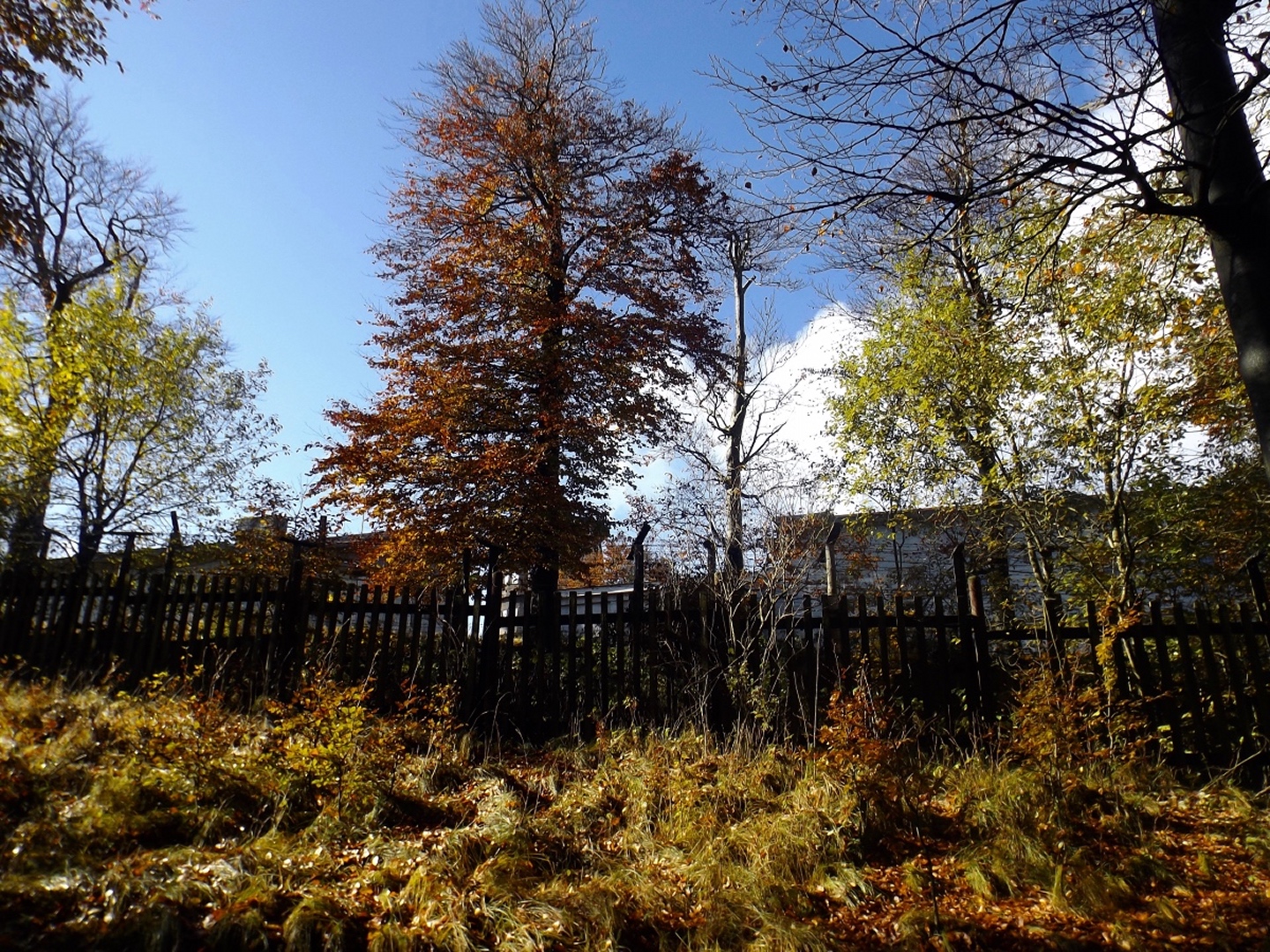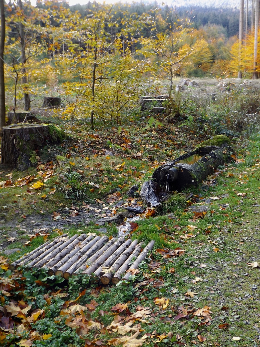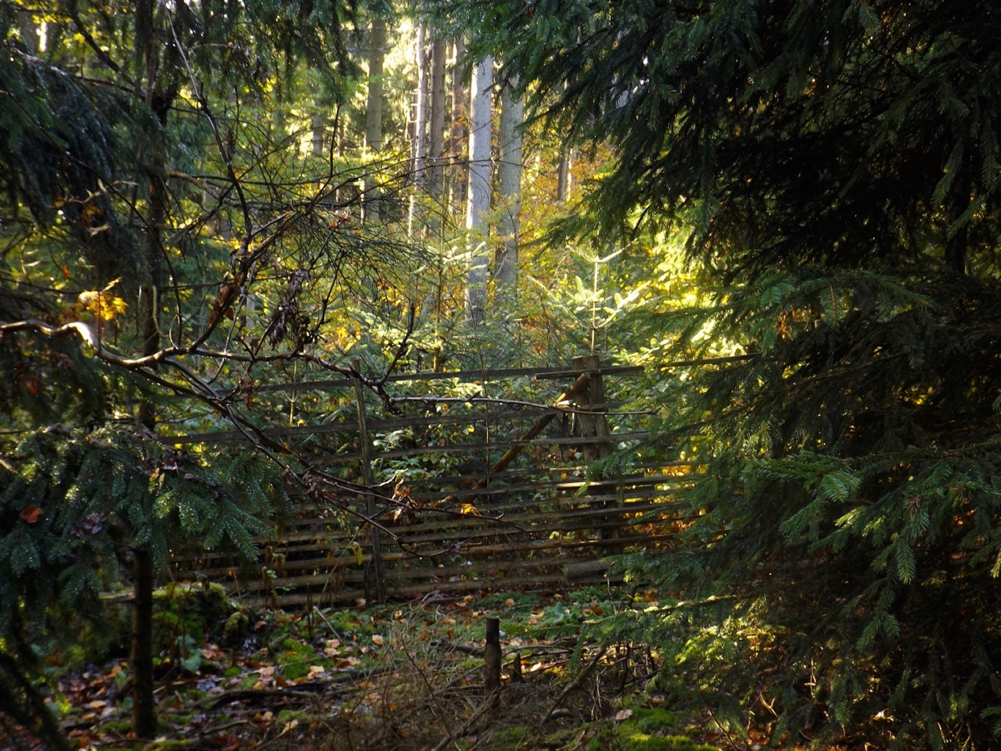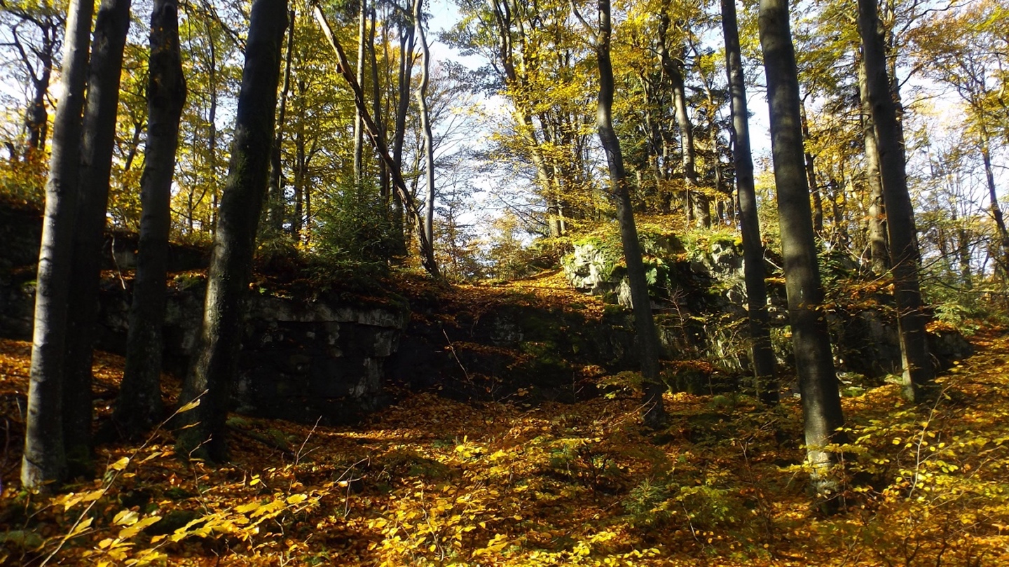 Ich startete nicht beim Restaurace U Mlynáre, sondern in der Ortsmitte, weil ich damit erstens ein paar Meter Anfahrt sparen konnte und zweitens dort ein Wegweiser mit genauer Höhenangabe steht und ich so den Höhenmesser halbwegs exakt einrichten konnte. Außerdem kam ich auf die glorreiche Idee, die Runde umzudrehen, was sich als sehr sinnvoll erweisen sollte. Denn der Aufstiegsweg über die Hanová cesta ist doch etwas anspruchsvoller als die Variante über die Plzeňská cesta. Ich folgte also der gelben Markierung von der Ortsmitte hinunter zur Teplá Bystřice und dann hinauf zum Abzweig Nad Folmavou und weiter zur Česká studánka. Dieser Abschnitt ist teilweise auf Asphalt, aber auf weitaus längeren Abschnitten auf Forststraßen und am Ende auf einem angenehmen Waldsteig. An einer Gabelung muss man etwas aufpassen, weil dort der blaue Weg rechts weiterführt, während richtigerweise der gelbe Weg nach links genommen werden muss. An der Quelle rastete ich kurz und nahm das erste Birnenvierterl zu mir. Hier gibt es nämlich neben einer Überdachung für die Quelle auch ein Rastbankerl und einige nette Bräuche der Wandervereine aus Furth im Wald und Domažlice, außerdem ist die Česká studánka der Ausgangspunkt der Hanová cesta, worauf auch durch einen Stein neben dem Rastbankerl hingewiesen wird. Hatte es bis hierhin wirklich noch dauerhaft Nebel und zwischendurch sogar ein paar Minuten Nieselregen, änderte sich kurz nach der Rast das Wetter schlagartig. Es dauerte keine zwanzig Minuten und auf einmal war AKW. Kein Wölkchen über mir und nur über der Cham-Further Senke und Richtung Waldmünchen Spuren von weiß. Die Hanová cesta (deutsch Hanasteig) führt übrigens auf dem gesamten Weg bis zum Gipfel durch das Naturschutzgebiet Čerchovské Hvozdy und darf deswegen offiziell nicht verlassen werden. Stellenweise existiert sogar neben dem Weg ein Schutzzaun, um unbefugtes Betreten zu verhindern. Für mich hat es diesen nicht gebraucht, auf einem derart schönen Weg bin ich gerne geblieben. Definitiv der bisher schönste Steig auf den Čerchov, den ich gegangen bin. Eine gute Stunde nach der Quelle erreichte ich einen anderen Zaun, nämlich den immer noch bestehenden um das ehemalige Militärareal am Gipfel. Der Pfad führt hier nach rechts zum großen Einfahrtstor, welches aber heute verschlossen war. Das machte aber nicht viel, weil daneben für Fußgänger eine Lücke im Zaun ist, durch die ganz legal und ohne Hindernisse gegangen werden kann. Natürlich bedeutete das, dass weder das Bistro noch der Aussichtsturm geöffnet war, aber das war mir auch egal. Ich war ja schon mit Coco oben gewesen und so toll war die Aussicht auch wieder nicht, weil sich im Umland doch die Wolken gehalten oder aber wiedergebildet hatten. Weniger egal war die Folge meines kleinen Ausflugs auf den Gipfelstein: Ich rutschte aus und bremste mit der rechten Hand, die den Schlag an den Ellenbogen weitergab. Das Resultat war zwar „nur“ eine Bänderdehnung, aber es war etwas schmerzhaft und eben der rechte Ellenbogen. Dazu später mehr. Anschließend setzte ich mich an einen der Tische am Aussichtsturm und mampfte das Wurstbrot und ein zweites Birnenvierterl, bevor ich mich ohne weitere Verzögerung an den Abstieg machte. Dieser ging zunächst über die grüne Markierung, die etwa 5 Meter unterhalb des Endpunktes der Hanová cesta von der Fahrstraße nach rechts in den Wald abzweigt, auf einem breiten Waldweg hinunter zum Abzweig Plzeňská cesta, wo dieser Weg auf die Horizontálka trifft. Ab jetzt verläuft der restliche Abstieg auf Asphalt, was den Vorteil hat, dass mit wenig Unebenheiten zu rechnen ist, andererseits aber auch nicht das schönste Geherlebnis darstellt. Allerdings ist es möglich, noch etwa 500 Meter gleich neben der Forststraße auf der Langlaufloipe, im Sommer eine Grasschneise, weiterzugehen. Man kann diese entweder kurz vor einer Rechtsbiegung über eine winzige Spur verlassen oder ein paar Meter nach der Kurve auf einem Forstweg nach links hinübergehen. Hier zweigt auch die grüne Markierung nach Babylon ab, während ich auf dem rot markierten Weg Richtung Česká Kubice blieb. Auf diesem passierte ich die wohl an Wochenenden bewartete Hütte Zelená chýše, deren Heizung zumindest in Betrieb war und etwas weiter unten den Jubilejní hájek, von dem aber nur noch ein kleiner Nadelbaum inmitten von ihn um mindestens 100% überragenden Buchen übriggeblieben ist. Soweit ich die Erklärungstafel verstanden habe, wurde dieses Hainchen 1928 zum zehnjährigen Jubiläum der Tschechoslowakei angelegt. Vorbei an einem Rastbankerl mit Votivtafel für den heiligen Václav erreichte ich schnell die Abzweigung Česká Kubice – rozcesta, bog aber nicht auf dem blau markierten Weg nach Nad Folmavou ab, sondern erst 30 Meter später jenseits der Teplá Bystřice auf den Radweg. Auf diesem erreichte ich vorbei am Restaurace U Mlynáre wieder den Ausgangspunkt. Aufgrund der Schmerzen und vor allem des Gefühls, die rechte Hand nicht zum Essen benutzen zu können, verzichtete ich sowohl hier als auch beim Restaurace U Tomásu direkt am Ausgangspunkt auf eine Einkehr. Jetzt kam auch die Problematik des rechten Armes zu tragen: Ich konnte mangels Kraft im Arm weder Rückwärtsgang noch ersten oder fünften Gang einlegen und musste mich deshalb auf der Heimfahrt jedes Mal verrenken, um das mit der linken Hand zu bewerkstelligen. Deshalb verzichtete ich nach dem Tankstopp bei ONO in Havlovice auch auf den eigentlich angedachten Oblatenkauf im Grenzshop in Lískova und fuhr direkt nach Hause. Dabei stellte ich überrascht fest, dass es über Waldmünchen 13 Kilometer kürzer zur ONO-Tankstelle (und damit auch nach Domažlice) ist als über Cham und Furth im Wald.