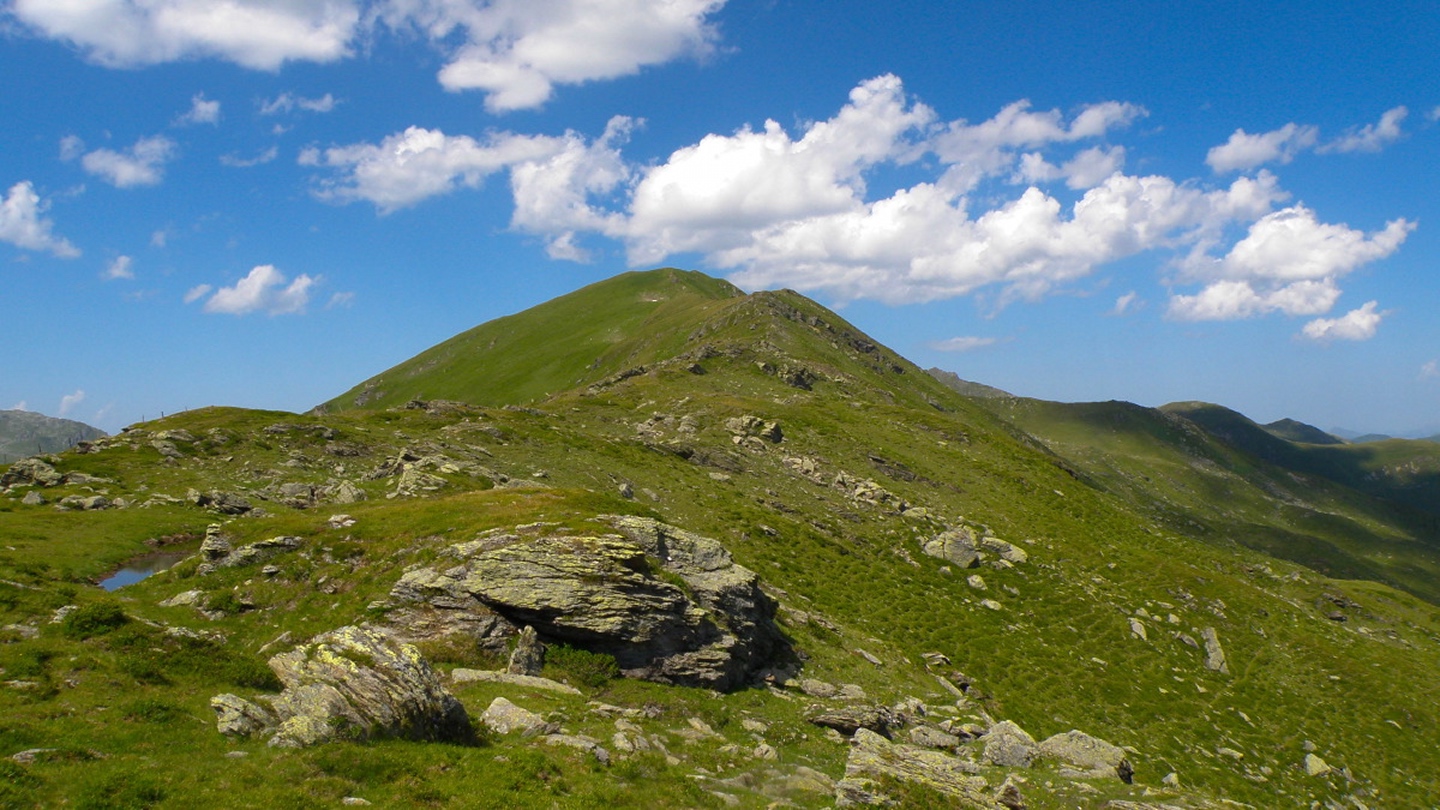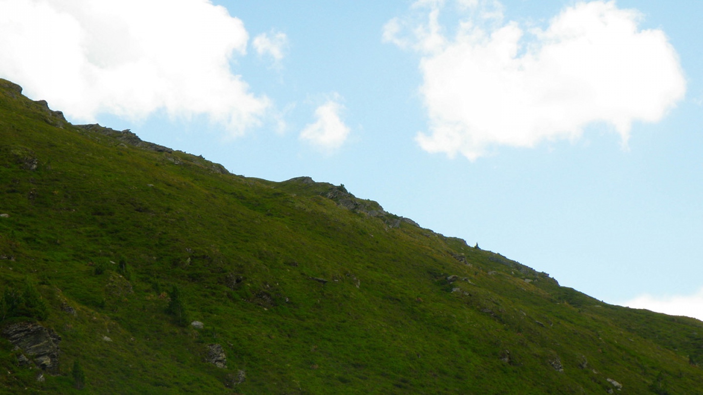 Bis zur Priel-Hochalm ging es auf verschiedenen Forststraßen. Bei den Ruinen zweigt dann ein sehr gut markierter, wenn auch teilweise undeutlicher Pfad ab zum Ronachgeier. Hier begannen die ersten Zweifel, ob ich die Strecke wirklich schaffen würde. Verschärft wurden diese von einer Herde Kühe, die auf einmal auf mich zustürmte. Glücklicherweise weiß ich, dass man sie mit den Wanderstöcken abwehren kann und wurde effektiv verschont. Sicherheit gab es mir allerdings nicht. So kam ich nach knapp drei Stunden mit weiterer Verspätung auf dem Ronachgeier an und wusste nicht, was ich tun sollte. Direkt zurück hätte bedeutet, wieder bei dieser aggressiven Herde vorbei zu müssen. Direktabstieg nach Süden oder Westen schien vom Gipfel aus nicht wirklich möglich. Also versuchte ich nach einer halben Stunde Pause doch, weiterzukommen. Inzwischen wirkte auch die Hitze auf mich, so dass ich nach etwa 15 Minuten aufgab und versuchte, weglos zur von diesem Punkt aus sichtbaren Müller-Hochalm zu kommen, von der aus ein Weg zur Jausenstation eingezeichnet war. Dieser Teil des Abstiegs war noch einigermaßen machbar, wenn auch teilweise holprig und steil. An der Müller-Hochalm angekommen, war jedoch nichts von einem Weg nach unten zu sehen. Also wieder quer durch die Wildnis, noch holpriger und noch steiler. Die Hitze wirkte noch stärker, so dass ich im Schatten eines Baumes eine nicht eingeplante Pause einlegen musste, da ich zusätzlich Panikattacken hatte. Hier erblickte ich die Rettung in Form eines Hochsitzes und eines breiten Weges nach unten etwa 200 Meter Luftlinie von mir entfernt. Außerdem hatte ich wieder Handyempfang und informierte erst einmal die Bamberger Hütte über meinen Abbruch. Als ich endlich um 18.10 Uhr an der Jausenstation ankam, war diese bereits geschlossen. Also nix Einkehr, sondern direkt zum Auto. Dort vernichtete ich versehentlich auch noch die Abdeckscheibe meines Kameradisplays, so dass demnächst eine neue Kamera fällig ist, weil eine Reparatur teurer käme und die Linse ja schon seit Jahren diesen fetten Kratzer hat. Als Lichtblick kann ich nur die Einkehr in der Kammerlander-Jägerstube in Gerlos nennen, das Champignonschnitzel mit Reis für 10,80 Euro war nicht nur riesig, sondern auch ziemlich gut. Auch sehr gut war das Zillertaler Schwarzbier, aber 3,80 für 0,33 Liter sind etwas heftig.