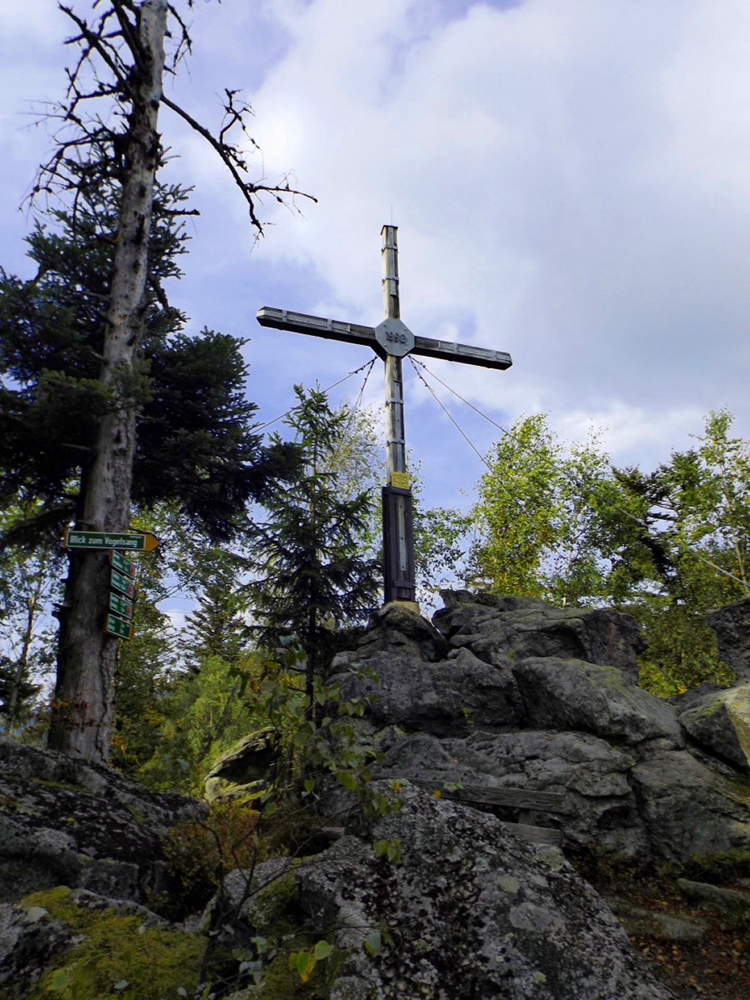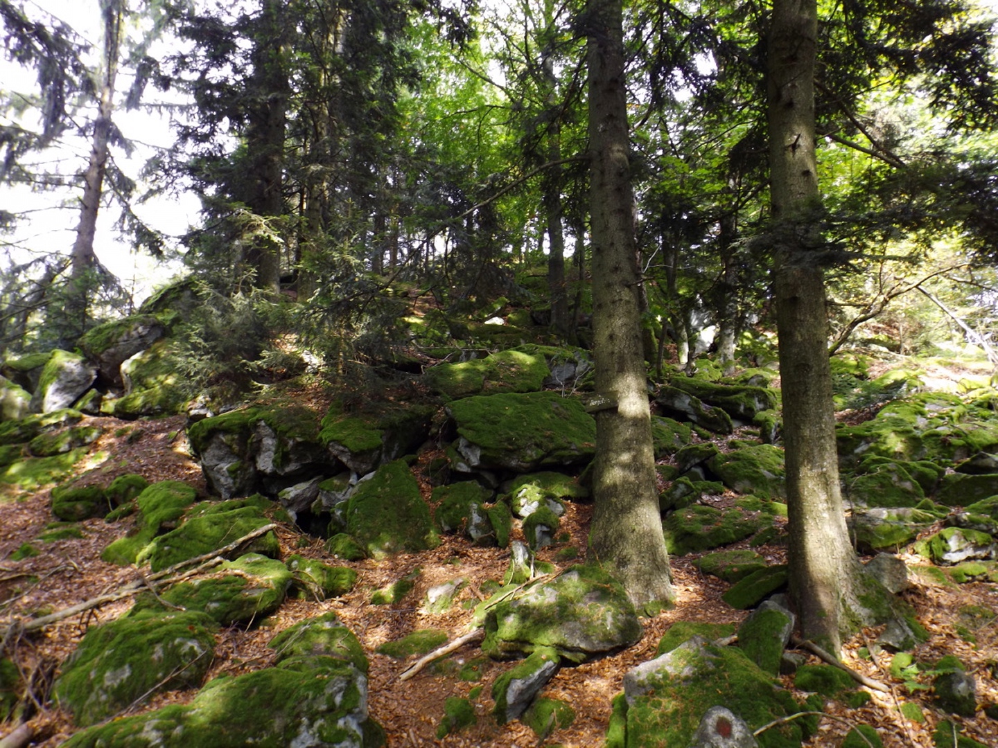 Ich hatte um elf Uhr einen Vorstellungstermin in Schwarzach, da sind es gerade mal acht Kilometer nach Bernried, dem Ausgangspunkt einer Runde über Burgstein, Rauhen Kulm und Klausenstein. Der Haken daran war nur, dass ich auf dm Rückweg noch bei Globus in Schwandorf Fleisch für Coco kaufen musste, also war es ganz wichtig, dass ich spätestens um 18 Uhr wieder am Auto war. Ohne Verlaufer und größere Pausen sollte das bei Start um 14 Uhr machbar sein. Dummerweise habe ich bereits in Bernried nicht richtig auf die Karte geschaut und bin statt dem direkten Weg über Ebenanger über Oberkager zum Burgsteinhaus aufgestiegen, der erste Kilometer Umweg mit 15 Minuten Zeitverlust. Der Weg lohnt sich kaum, denn es geht bis auf die letzten 500 Meter dauernd auf einer Asphaltstraße dahin. Am Naturfreundehaus angekommen mampfte ich schnell ein Stück Apfel und folgte dem gut markierten Weg zum Burgstein. An einem Abzweig etwas unterhalb kann man markiert die Umgehungsroute wählen oder über den Gipfel gehen. warum diese Variante als Klettersteig bezeichnet wird, kann ich nicht wirklich nachvollziehen. Die Aussicht vom Burgstein ist brauchbar, aber nicht mehr, er ist halt nur 885 Meter hoch und auf drei Seiten von höheren Bergen umgeben, während die Südseite mit hohen Bäumen zugewachsen ist. Der nördliche Zustieg ist immer noch kein Klettersteig, aber zumindest etwas anspruchsvoller als der südliche. Nach ein paar Minuten kam ich an einer Forststraße heraus, auf der rechten Seite steht ein kleiner Infopavillion. Ich ging nach Westen und bog gleich nach 50 Metern auf eine unmarkierte Harvesterspur ab, die den Hang hinauf führt. Hier kann man an einer Stelle rechts steil geradeaus hinaufgehen, was wohl der in der Karte verzeichnete Pfad ist, aber ich blieb in der Diagonalen und wusste nicht mehr, wo ich war, als ich wieder auf einer Forststraße herauskam. Das Hinweisschild, dass ich mich in einem Naturwaldreservat befand, war ebenso wenig hilfreich wie die Jagdhütte oberhalb des Weges, weil ich sie in der Karte nicht fand. Wäre ich dieser Straße leicht abschüssig nach Nordosten gefolgt, hätte ich nach 300 Metern den markierten Zustieg von Kalteck zum Rauhen Kulm erreicht und wäre wieder auf der geplanten Route gewesen. Ich war aber unschlüssig und wurde durch Vater und Sohn, die aus Westen kamen und sich ebenfalls verlaufen hatten, weiter verwirrt. Sie meinten, dass sie von einem Abzweig zum Rauhen Kulm kamen, es aber zeitlich für mich knapp würde. Dieser Abzweig wäre mein geplanter Abstiegsweg gewesen, als ich das feststellte, war mir jede Lust vergangen und ich lief frustriert auf dem wieder markierten Weg zum Pavillion am Burgstein zurück, nahm die Umgehung zum Burgsteinhaus und ging den eigentlich geplanten Aufstiegsweg hinunter nach Bernried. Positiv war lediglich, dass ich dadurch deutlich vor 18 Uhr am Auto war und somit ohne Probleme Coco für die nächsten zwei Wochen versorgen konnte.