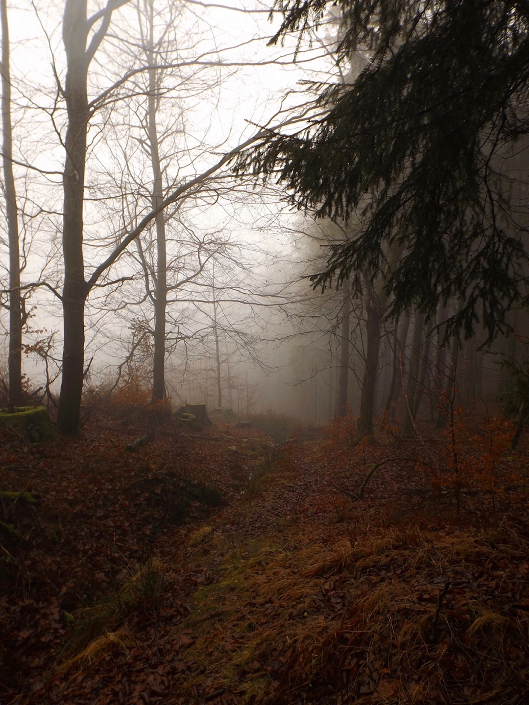 Auch wenn ich eigentlich nicht viel gegen Schnee und Wanderungen darin habe, stört mich der verlängerte Herbst relativ wenig. Klar wäre etwas mehr Sonne gar nicht verkehrt, aber auch der Nebel kann wunderbare Stimmungsfotos ermöglichen, wie beim letzten Mal auf der Rabenleite deutlich wurde. Hatte es bei der Tea time im November noch gepisst ohne Ende, war es dieses Mal trocken, so dass ich mich früh morgens auf den Weg in die Gemeinde Stadlern machte, um diese eigentlich für Anfang November geplante Runde nachzuholen. Ich stellte das Auto an der gleichen Stelle in Schwarzach ab wie im Mai bei der Runde nach Steinlohe, ging aber nicht nach Süden, sondern nach Norden.