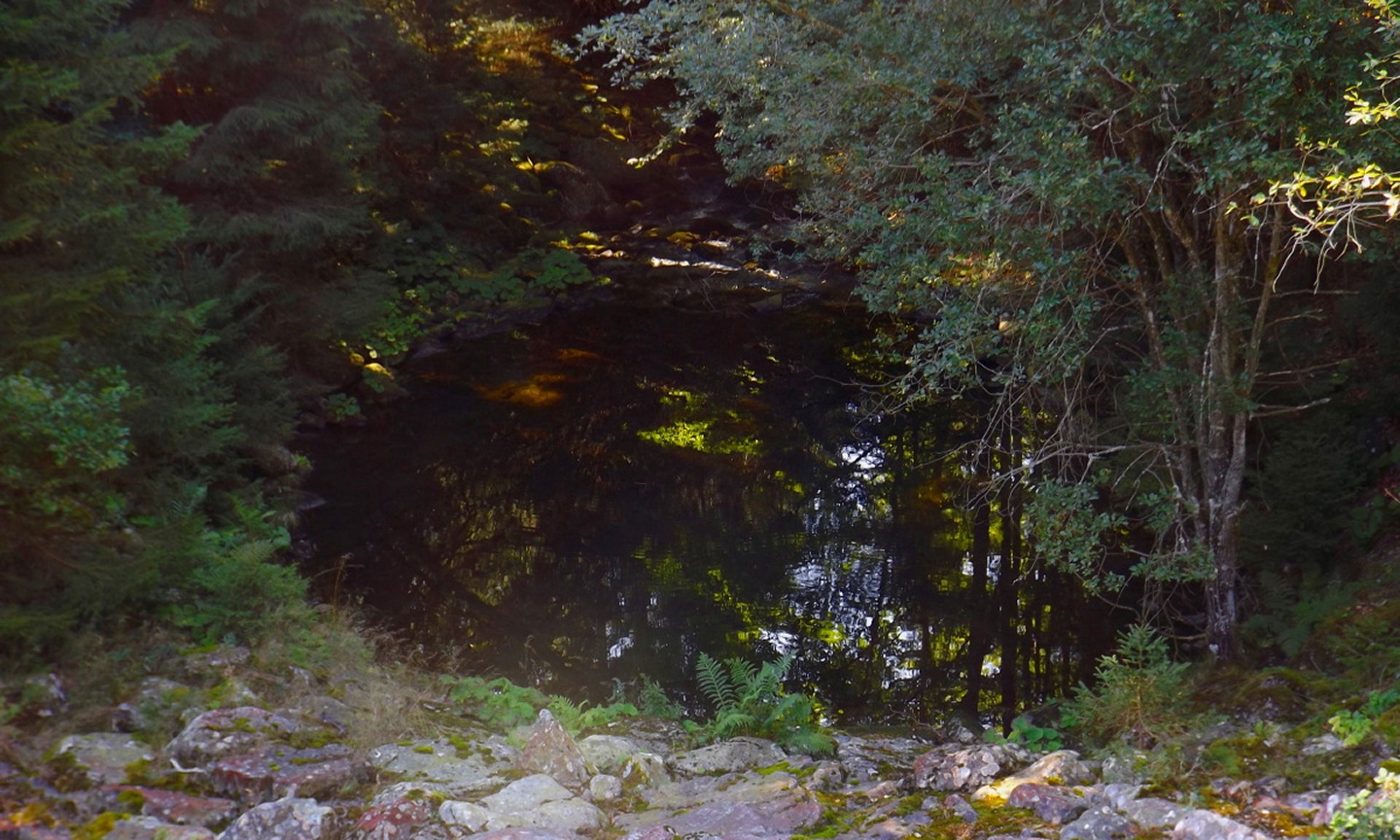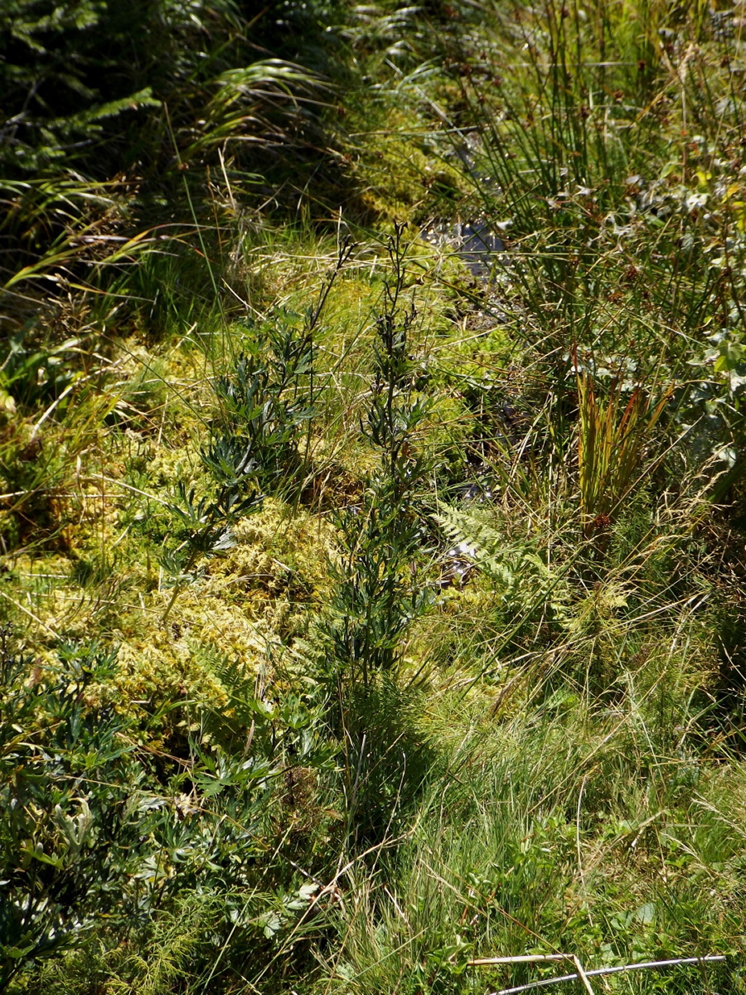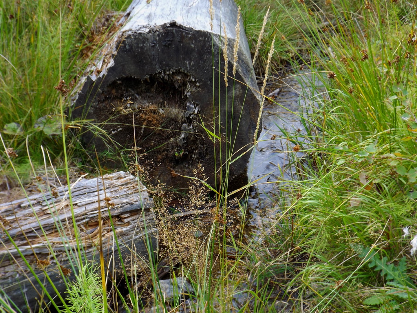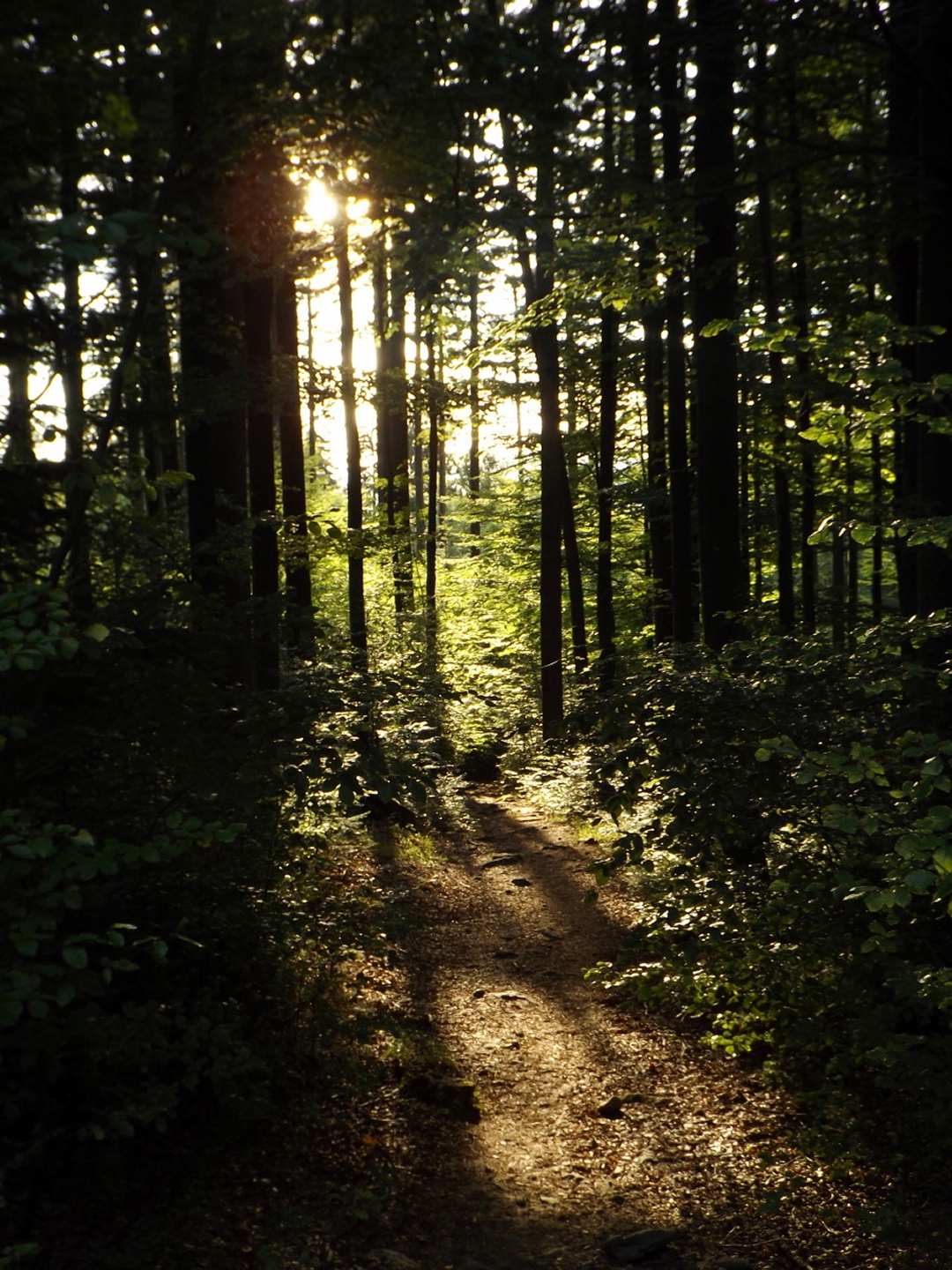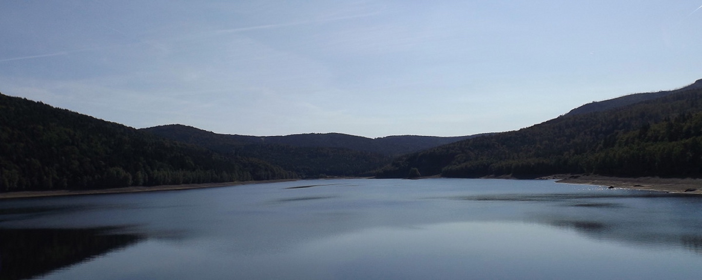 Am Parkplatz unterhalb der Trinkwassertalsperre Frauenau war überraschend wenig Betrieb, so dass ich ganz vorne beim Infopavillion parken konnte. Von dort ging es erst einmal auf einem wurzeligen Waldsteig vorbei an Betriebsgebäuden hinauf zur Dammkrone. Laut Infotafel war der Staudamm bei seiner Errichtung 1984 der höchste in Deutschland, ob er es jetzt noch ist, weiß ich nicht, und ich bin auch zu faul, jetzt während des Schreibens nachzuschauen. Man könnte von hier aus geradeaus weitergehen und auf einem markierten wohl Waldsteig entlang der Südseite zum östlichen Ende und zur Schachtenstraße kommen, ich versprach mir aber von der Nordseite (und auch der Staumauer selbst) aus interessante Blicke auf den Rachel und seine nördlichen Kämme. Von der Mauer aus gab es die auch, dazu kamen sehr schöne Blicke Richtung Zwiesel und ins Arbergebiet. Details können den Fotos entnommen werden. Während der 20 Minuten, die ich für die nicht mal soooooo lange Strecke über die Mauer brauchte, wurde ich nicht nur von Radfahrern, sondern auch von einem leeren Holztransporter überholt, die Nordseite gehört scheinbar nicht ganz zur Nationalpark-Kernzone. Leider setzt sich die Asphaltstraße nach der Staumauer noch eine ganze Weile fort, ich war bis weit hinter dem Ende des Stausees auf diesem ungeliebten Untergrund unterwegs. Naja, wenigstens konnte ich die meiste Strecke auf dem breiten Grasstreifen neben der Fahrstraße gehen, also war es nicht ganz so schlimm. Die Aussicht von der Nordseite war dann auch nicht so überragend, weil zwischen Straße und See ein doch etwa zehn Meter breiter Waldstreifen steht, der nicht vom Borkenkäfer zerfressen wurde. Am einen oder anderen Seitenbach gibt es eine kleine Schneise, die aber selten gute Fotomotive erlaubte. Ganz hinten stand früher einmal die kleine Siedlung Hirschbach, von der nicht mal mehr Grundmauern oder Brennesselfelder übrig sind. Dafür steht an dieser Stelle ein Unterstandshütterl, eine Infotafel und zwei Rastbänke. Die Wiese zum See hin war frisch gemäht, eigentlich Betreten verboten, aber für ein paar Fotos habe ich mich jeweils einen Meter hinter die Verbotsschilder gewagt. An der Südostecke des Sees kommt schließlich der Kleine Regen herunter, den ich im Laufe der Tour noch mehrere Male überqueren sollte. Bis zum Schachten (ohne differenzierenden Beinamen), an dessen unterem Ende der direkte Steig zum Rachel rechts abzweigt, ging es jetzt sanft bergauf, der Belag wechselte zu Schotter, ich wurde weiterhin von Radfahrern und einem Auto des Nationalparks überholt. Auch am Schachten war das Gras ziemlich kurz, aber zumindest weggeräumt, oder gehört dieser Schachten zu denjenigen, die in diesem Sommer wieder beweidet wurden? Zumindest ist die Diensthütte in einem sehr guten Zustand und am Nebengebäude standen Gerätschaften herum. Ich hielt mich aber nicht wirklich auf, sondern folgte weiterhin dem Wegweiser zum Verlorenen Schachten, dessen Zeitangabe wenig konsistent ist. Etwas oberhalb des Schachtens trennen sich Rad- und Fußweg und ich durfte auf einem sehr schönen breiten Waldpfad, der auch Judenweg genannt wird, weiter nach oben steigen. Auf diese Weise bekam ich zwar die Regenschwelle nicht zu Gesicht, aber das lässt sich ja einmal nachholen. Bald kreuzte der Fußweg den Radweg und vereinigte sich mit dem Goldsteig, der in der entgegengesetzten Richtung vom Hochschachten herunterkommt und hier zum Rachel abzweigt. Auf diesem blieb ich bis zum Verlorenen Schachten, einem der interessantesten Orte der Gegend. Er gehört nicht zum Nationalpark, sondern ist seit Jahrhunderten ununterbrochen im Besitz der gleichen (lokalen) Adelsfamilie, zieht sich hinüber bis zur Grenze (hinauf ist an dieser Stelle nicht ganz richtig, da das Gelände doch recht flach ist) und beheimatet die größte zusammenhängende Seegrasfläche aller Schachten im Bayerischen Wald. Was ich trotz intensiver Suche immer noch nicht herausgefunden habe, ist die Herkunft seines Namens. Daran, dass man hier verloren wäre, kann es nicht liegen, weil die Aussage so nicht stimmt. Immerhin steht hier eine kleine Hütte, die dem Bayerwaldverein Frauenau gehört und auch deutliche Signale einer gelegentlichen Nutzung zeigt. Hier machte ich meine erste größere Pause und genoss ein Wurst-Käse-Brot (die ersten beiden Apfelvierterln habe ich schon vorher gegessen, ich muss aber nicht jedes im Text notieren). Anschließend nahm ich den wieder einmal genussvollsten Teil der Wanderung unter die Füße, den Grenzsteig. Dieser führte mich zunächst etwa 80 Höhenmeter hinunter zur Brückerl über den Bach, der an dieser Stelle seinen Namen von Malá Řezná in Kleiner Regen ändert. Gleich nach der Überquerung begegnete ich zu meiner totalen Überraschung einem Wanderer, der vom Rachel herunterkam und den Steig unterhalb des Verlorenen Schachtens hinüber zum Goldsteig suchte. Ich hatte da nicht sonderlich aufgepasst und konnte ihm nicht wirklich weiterhelfen. Im weiteren Verlauf wechselte der Grenzsteig mehrfach seinen Charakter, es wurde mal trocken-moosig, mal richtig sumpfig (immerhin führt die Grenze in diesem Bereich mitten durch einige der schönsten Filze des Böhmerwaldes), dann musste wieder eine kleine Felsformation umgangen werden. An einer Stelle war der Grenzsteig übelst durch umgestürzte Bäume verlegt, aber auch hier fand ich eine Umgehung. Überraschenderweise, und hier unterscheidet sich dieser Abschnitt von dem, den ich vor fünf Wochen gegangen war, führten weite Strecken durch feinste Heidelbeersträucher, die auch noch gut mit sehr leckeren Früchten gefüllt waren. Ich habe zwar irgendwann mal in der Nationalparkverordnung gelesen, dass in der Kernzone nichts gepflückt werden darf, aber das bezieht sich eher auf Blumen. Außerdem habe ich ja nicht gesammelt, sondern nur genascht, und ich kann mir nicht vorstellen, dass mich ein Ranger zum Hungern zwingen würde, wenn mehr als genug Beeren für alle Vögel, Wildtiere und Wander