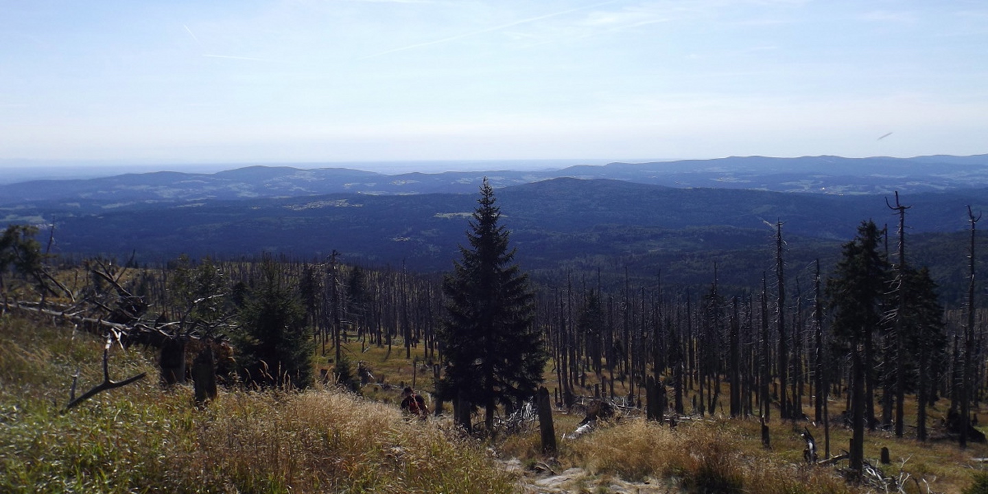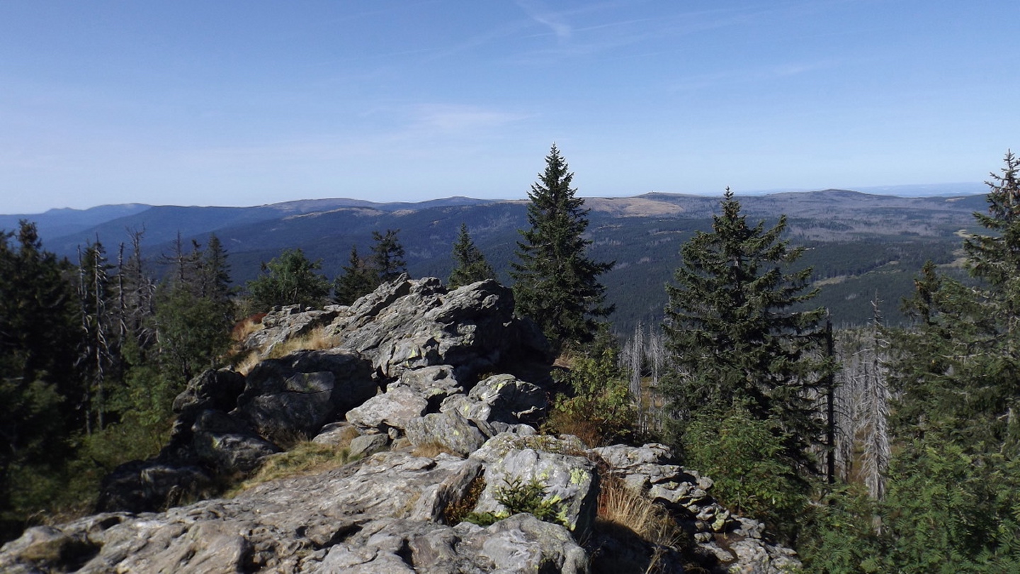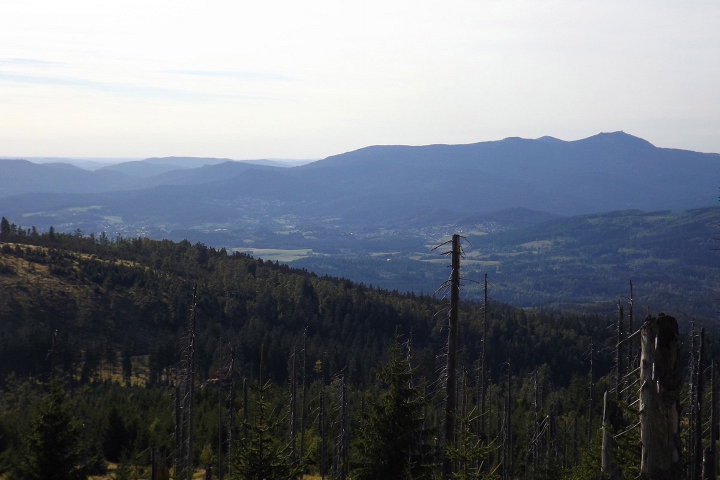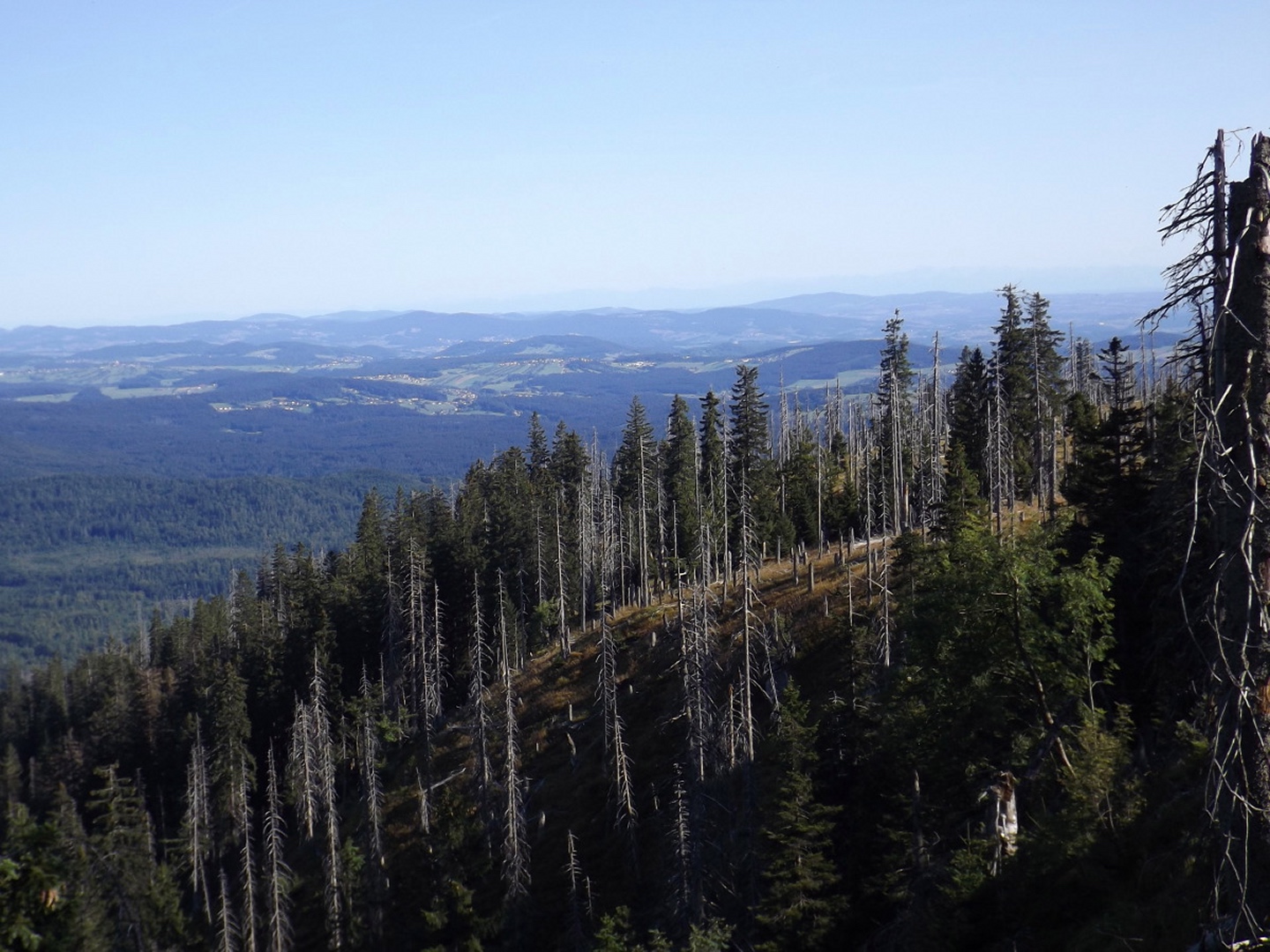 Ich habe ja vor fünf Wochen die Lusenüberschreitung vollmundig als meine Königstour für 2015 bezeichnet. Irgendwie stimmt das schon noch, aber weit entfernt war die Rachelüberschreitung genusstechnisch auch nicht. In einer Hinsicht war sie auf jeden Fall einfacher, nämlich vom Logistischen. Ich ging am gleichen Ort los, an den ich am Abend zurückkam, und konnte deshalb mit dem Auto direkt hinfahren und hatte keinen Stress mit Bussen. Zudem gibt es wohl keinen anderen Berg im Bayerischen Wald, der derart als Synonym für den Charakter des Nationalparks stehen könnte wie der Rachel: Doppelgipfelig, wild, weite Zustiegswege und ursprünglich geblieben. So ganz nebenbei gibt es dort auch keinen höheren, weil der Arber ja deutlich außerhalb der Nationalparkgrenzen liegt. Genussmindernd war hingegen die Tatsache, dass ich bei AKW und bis zu 25 Grad mein Kopftuch vergessen hatte und somit suboptimal vor der Sonne geschützt war. Aber dafür kann ja die Strecke nichts.