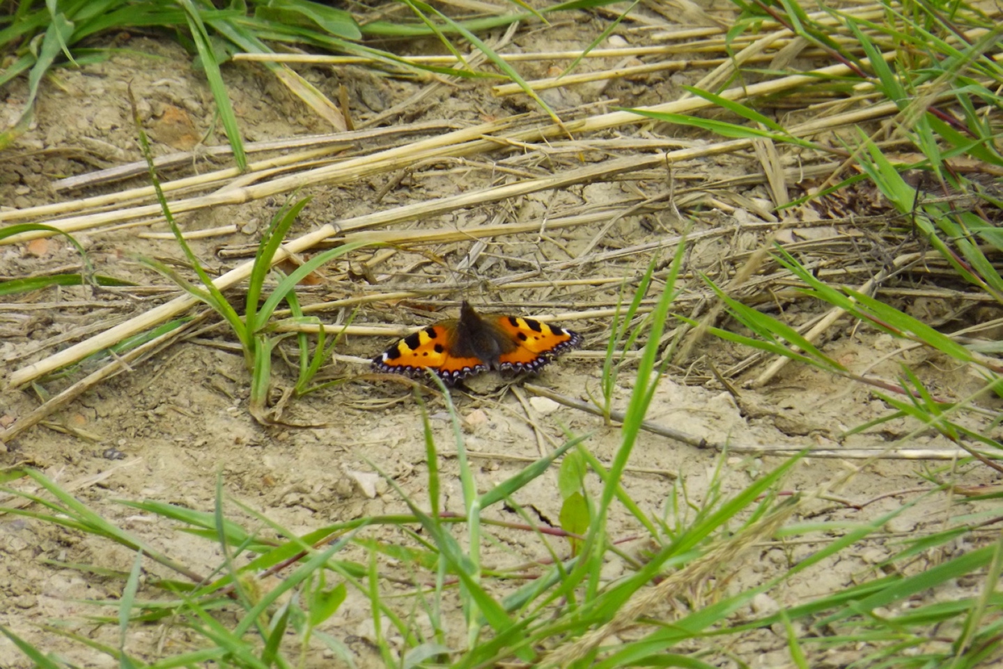 Zum Weg ist nicht viel zu schreiben. Ich folgte im Aufstieg der Markierung „Englische Flagge“, überquerte dabei auch den Reuther Berg, wobei man von diesem kleinen Vorgipfel nicht viel merkt, und war nach 70 Minuten oben. Nett war vor allem der kleine Schmetterling, der am Wegesrand stillhielt, bis ich ihn fotografiert hatte und erst davonflog, als die Kamera wieder aus war. Nach einem wenig lohnenden Abstecher auf den Aussichtsturm, dessen Scheiben zwar sauber geputzt sind, was aber nix hilft, wenn es genau zwei schmale Aussichtsschneisen durch die Baumwipfel gibt, kehrte ich im Biergarten des Berggasthauses ein. Der Himbeer-Quark-Kuchen war sehr gut und auch am schwarzen Tee und der anschließenden Kirschschorle gab es nichts zu beanstanden. Da ich wesentlich flotter unterwegs war (und auch der Weg kürzer als gemäß Kompasskarte angenommen), dehnte ich die Pause wieder auf fast eineinhalb Stunden aus, um nicht zu früh in Nürnberg zu sein. Auf dem Rückweg folgte ich zunächst der japanischen Flagge als Wegmarkierung Richtung Leinburg, bis diese auf einmal nicht mehr da war, ich aber auf einer Asphaltstraße zum Dorf kam. Dort bog ich dann nach links in die Haidelbacherstraße ab, die am Ortsende als Schotterweg weitergeht, und kam so nach Unterhaidelbach. Dort kam ich an einer uralten Eiche und einer etwas jüngeren Linde vorbei, bevor ich der Unterhaidelbacher Hauptstraße nach links folgte und auf der Markierung „PP“ über Pötzling wieder zurück zum Auto kam und wunschgemäß kurz nach 19 Uhr im Brozzi war.