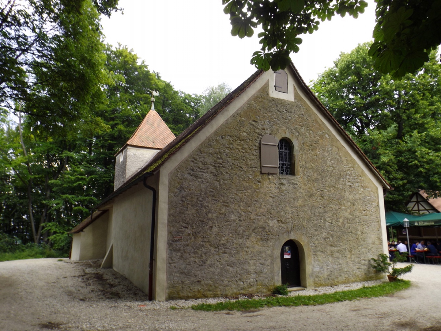 Im Nachhinein gesehen wäre es besser gewesen, die Runde umgekehrt zu gehen. Erstens hätte ich dann die unangenehme 40 Meter lange Steilstelle im Wald, die fast 45 Grad haben dürfte, im Aufstieg gehabt. Zweitens hätte ich die Pause nicht künstlich verlängern müssen, weil ich noch den Nonnenberg hintendranhängen hätte können. Die vier zusätzlichen Kilometer wären locker in einer Stunde machbar gewesen, und falls ich 20 Minuten später fertig gewesen wäre, hätte es auch nix gemacht, dann hätte ich halt einen anderen Platz am Frauentisch bekommen. Unangenehm waren auch die ständigen Flugzeuge, die beim Anflug auf den Nürnberger Flughafen direkt über dem Moritzberg unterwegs waren. Das hatte ich beim letzten Mal nicht so in Erinnerung.