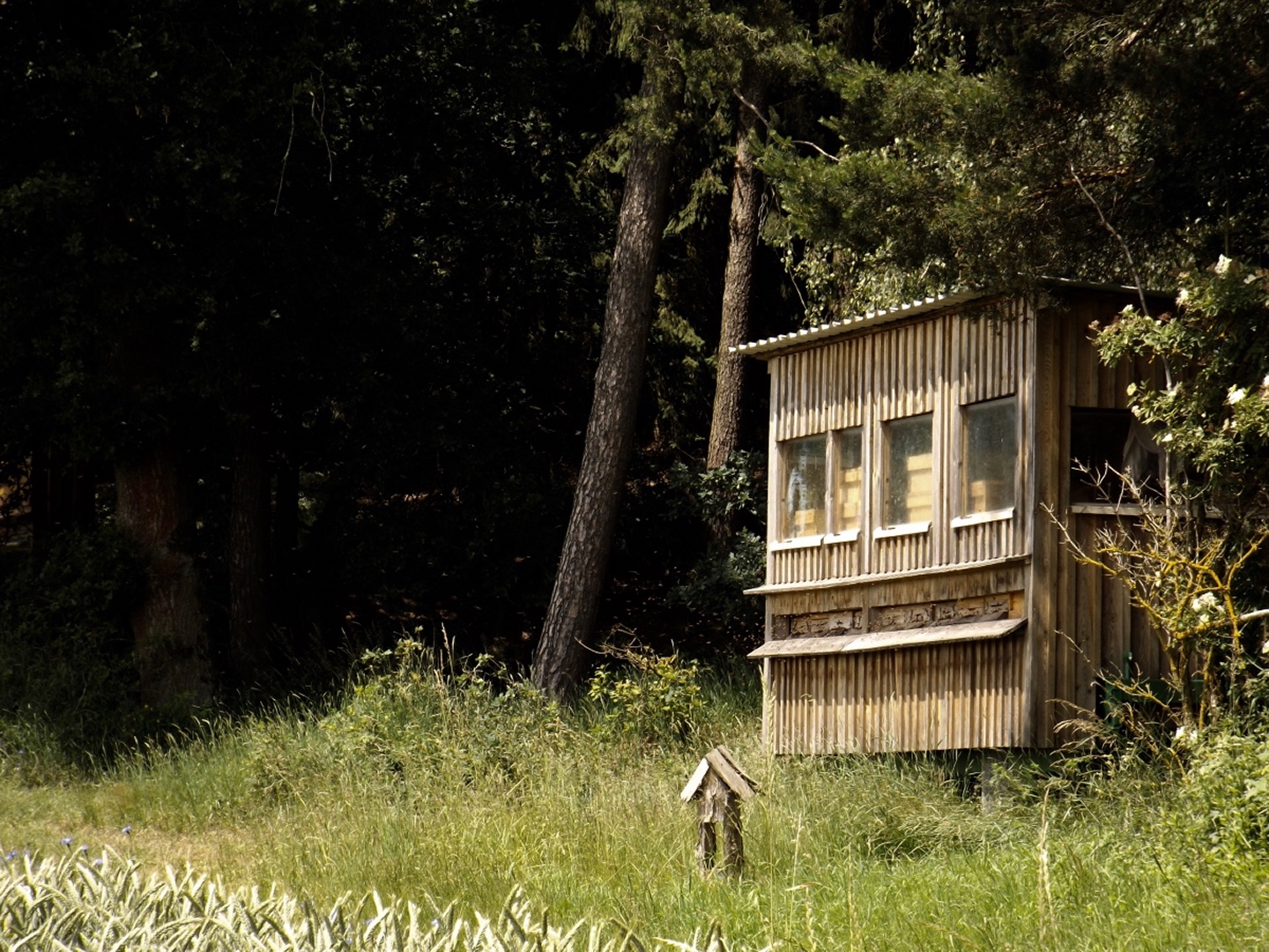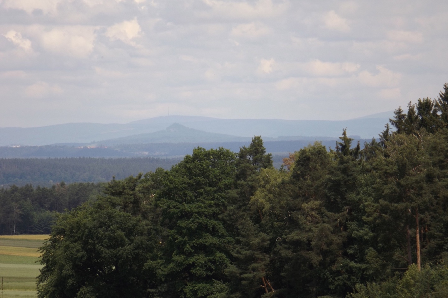 Dort ließ ich Karlie zunächst bei weit geöffnetem Fenster im Auto und machte mich auf eine kleine Erkundungstour, die allerdings erfolglos blieb, weil ich nicht weit genug gegangen bin. Anschließend durfte er mir auf der Hüttenterrasse Gesellschaft leisten und blieb brav unter der Sitzbank, obwohl mehrere andere Hunde anwesend waren, die ihn schon gewaltig interessiert hätten. Zum Freudenberger Bier brauche ich sowieso nichts mehr schreiben, das Hüttenpfandl erwies sich als Wiener Schnitzel auf Käsespatzen mit gerösteter Zwiebel obendrüber und war so, wie ich es von der Buchberghütte gewohnt bin: Exzellent, und das wieder einmal zu böhmisch anmutenden Preisen. Ich habe schon gewusst, warum ich dem Jugendtreff Nabburg den Buchberg als Führungsziel vorgeschlagen habe.