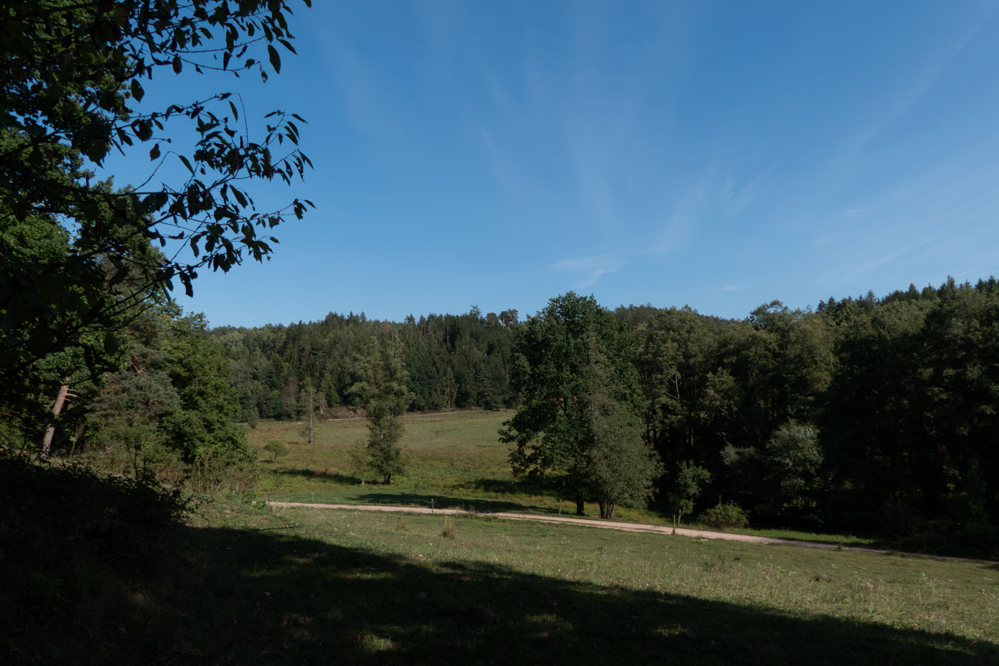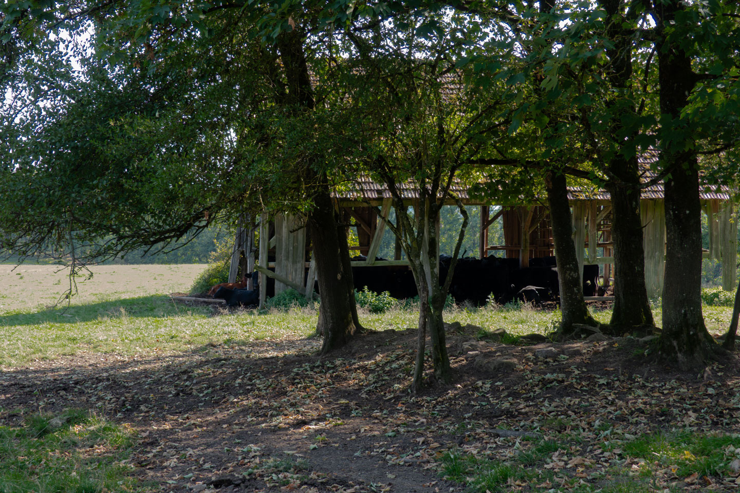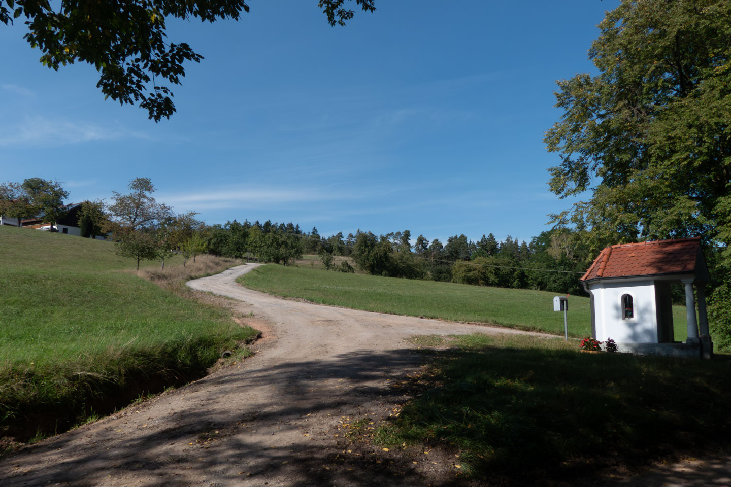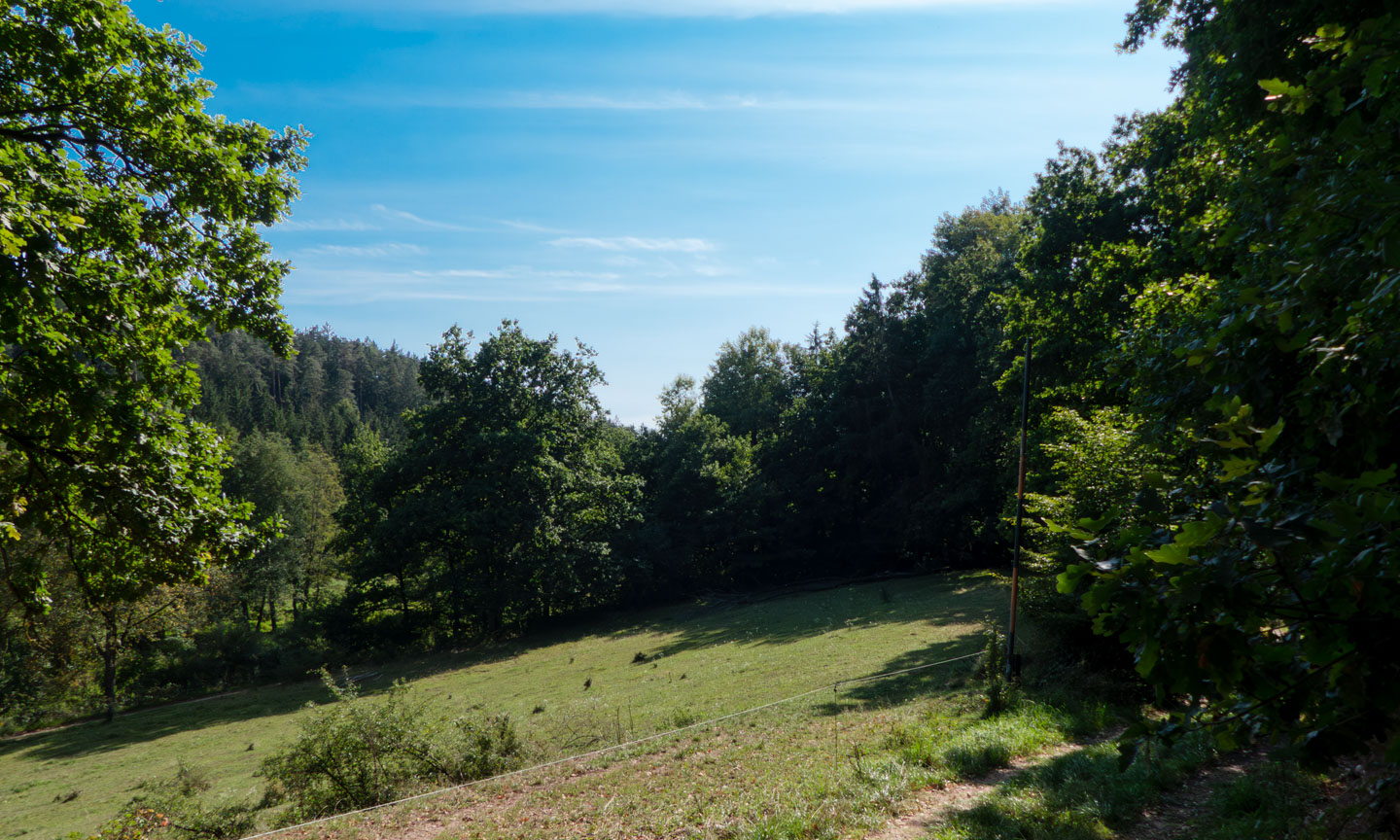 Ein kleines Problem entstand dann in der Nacht, weil ich bis vier Uhr wach lag und somit ein Start vor neun Uhr absolut unmöglich wurde. War aber nicht schlimm, so verkürzte ich den Teil vor der Pause auf knapp fünf Kilometer und hängte auf dem Rückweg ein bisserl dran. Die Ecke, die wegfiel, kann ich jederzeit nachholen. Suboptimal war noch, dass mehr als zwei Drittel der Strecke auf befestigten Wegen verliefen und gegen Ende eine kleine GKK 4-Einlage auf mich wartete, weil der im Bayernatlas eingezeichnete und vom Router empfohlene Pfad in der Realität zwar zu existieren scheint, aber dank GKK 7 der Einstieg nicht auffindbar ist. Auch der Extremausbau der Forstwege ab Maad beeinträchtigt die Ästhetik der Runde schon ganz leicht. Vielleicht auch nicht so leicht. Vielleicht sogar heftig. Aber das ist Ansichtssache. Der Teil vorbei an Lieberg ist durch Weidezäune abgesperrt, aber mit Durchgängen versehen, also darf man hier gehen. Man sollte nur die dort weidenden oder sich im Offenstall ausruhenden Kühe nicht ärgern. Hab ich nicht getan, also sind sie alle liegengeblieben. Auch empfiehlt es sich, einen etwas größeren Bogen um die beiden Bienenstandorte zu machen, wenn man auch dort in Ruhe gelassen werden will. Hab ich beim zweiten versäumt, aber als die Bienen nach 50 Metern gemerkt haben, dass ich einfach nur weitergehen will, sind sie umgekehrt.