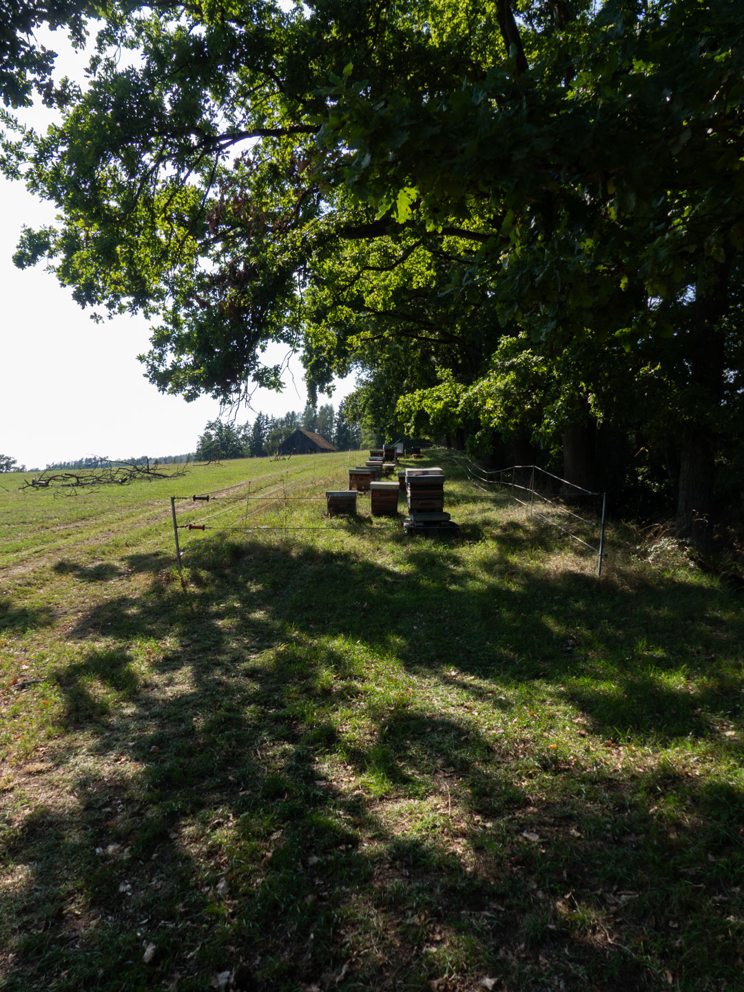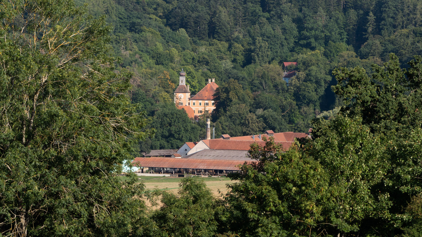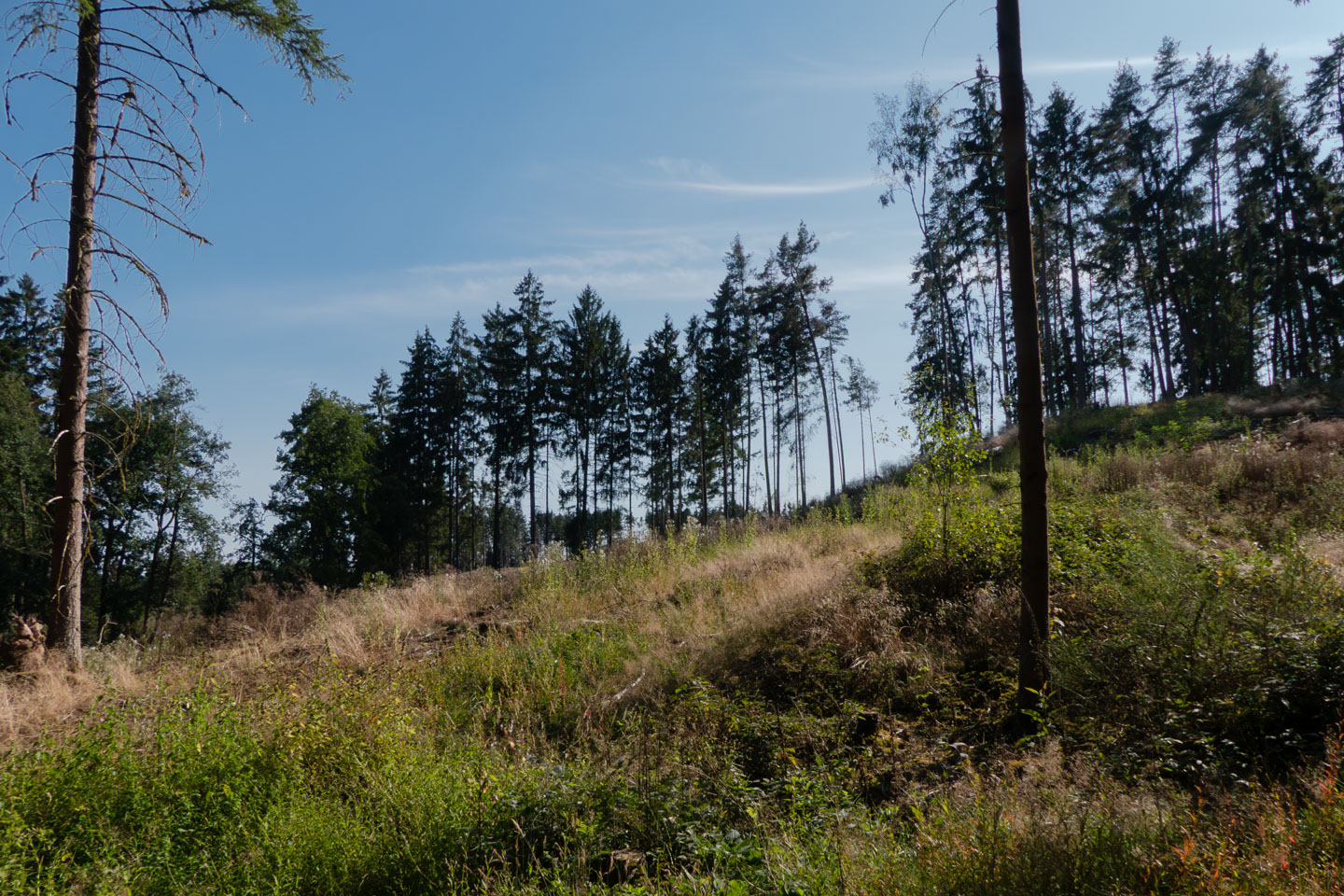 Ein kleines Problem entstand dann in der Nacht, weil ich bis vier Uhr wach lag und somit ein Start vor neun Uhr absolut unmöglich wurde. War aber nicht schlimm, so verkürzte ich den Teil vor der Pause auf knapp fünf Kilometer und hängte auf dem Rückweg ein bisserl dran. Die Ecke, die wegfiel, kann ich jederzeit nachholen. Suboptimal war noch, dass mehr als zwei Drittel der Strecke auf befestigten Wegen verliefen und gegen Ende eine kleine GKK 4-Einlage auf mich wartete, weil der im Bayernatlas eingezeichnete und vom Router empfohlene Pfad in der Realität zwar zu existieren scheint, aber dank GKK 7 der Einstieg nicht auffindbar ist. Auch der Extremausbau der Forstwege ab Maad beeinträchtigt die Ästhetik der Runde schon ganz leicht. Vielleicht auch nicht so leicht. Vielleicht sogar heftig. Aber das ist Ansichtssache. Der Teil vorbei an Lieberg ist durch Weidezäune abgesperrt, aber mit Durchgängen versehen, also darf man hier gehen. Man sollte nur die dort weidenden oder sich im Offenstall ausruhenden Kühe nicht ärgern. Hab ich nicht getan, also sind sie alle liegengeblieben. Auch empfiehlt es sich, einen etwas größeren Bogen um die beiden Bienenstandorte zu machen, wenn man auch dort in Ruhe gelassen werden will. Hab ich beim zweiten versäumt, aber als die Bienen nach 50 Metern gemerkt haben, dass ich einfach nur weitergehen will, sind sie umgekehrt.