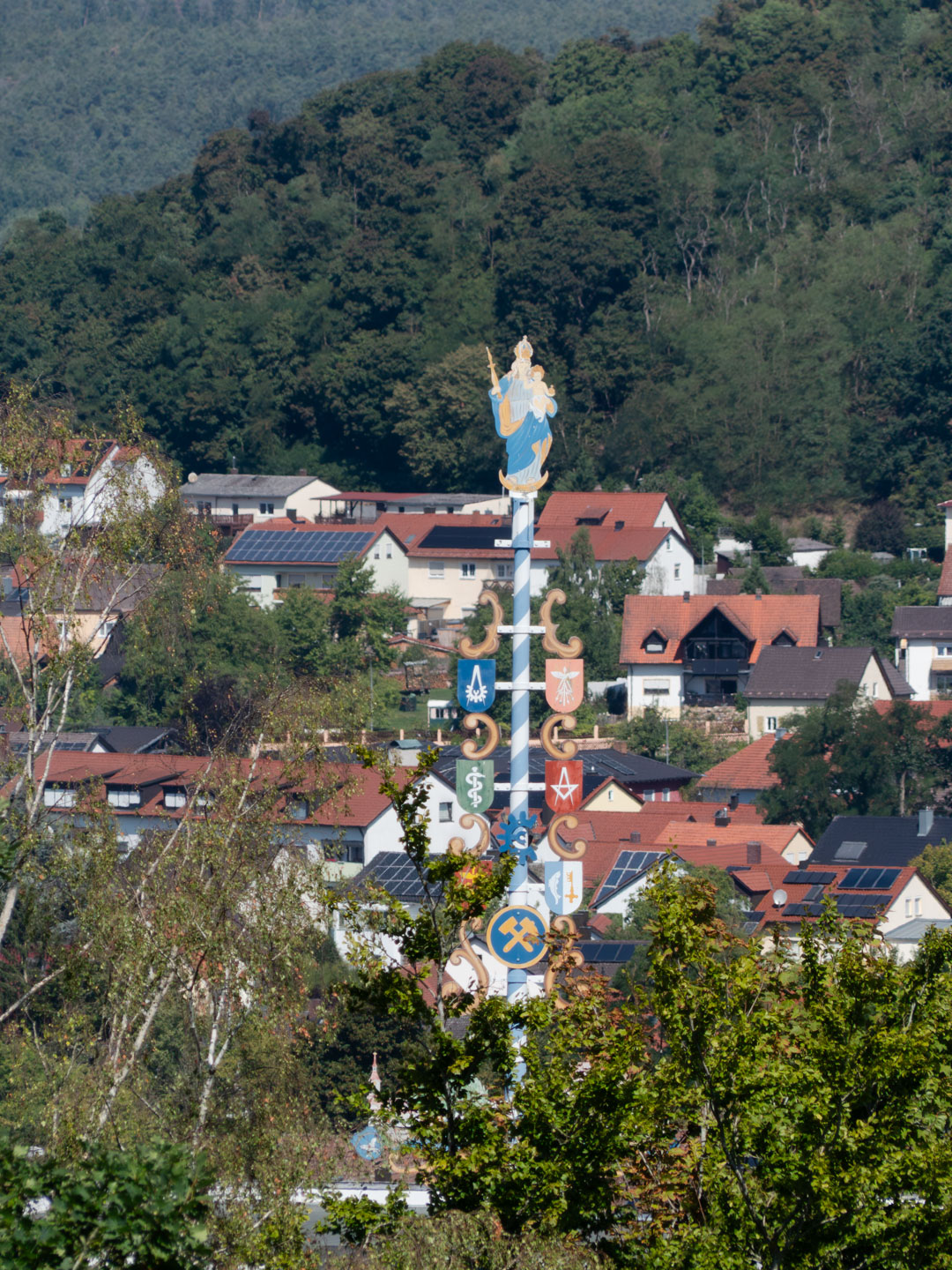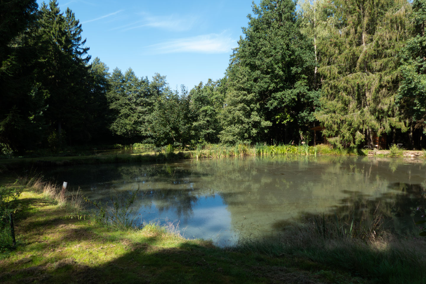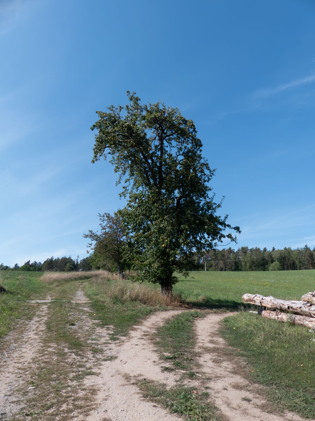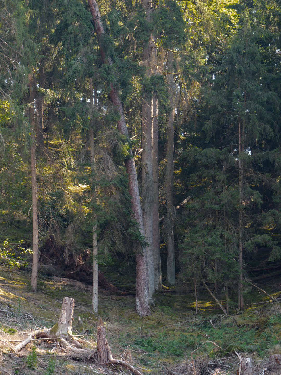 Ein kleines Problem entstand dann in der Nacht, weil ich bis vier Uhr wach lag und somit ein Start vor neun Uhr absolut unmöglich wurde. War aber nicht schlimm, so verkürzte ich den Teil vor der Pause auf knapp fünf Kilometer und hängte auf dem Rückweg ein bisserl dran. Die Ecke, die wegfiel, kann ich jederzeit nachholen. Suboptimal war noch, dass mehr als zwei Drittel der Strecke auf befestigten Wegen verliefen und gegen Ende eine kleine GKK 4-Einlage auf mich wartete, weil der im Bayernatlas eingezeichnete und vom Router empfohlene Pfad in der Realität zwar zu existieren scheint, aber dank GKK 7 der Einstieg nicht auffindbar ist. Auch der Extremausbau der Forstwege ab Maad beeinträchtigt die Ästhetik der Runde schon ganz leicht. Vielleicht auch nicht so leicht. Vielleicht sogar heftig. Aber das ist Ansichtssache. Der Teil vorbei an Lieberg ist durch Weidezäune abgesperrt, aber mit Durchgängen versehen, also darf man hier gehen. Man sollte nur die dort weidenden oder sich im Offenstall ausruhenden Kühe nicht ärgern. Hab ich nicht getan, also sind sie alle liegengeblieben. Auch empfiehlt es sich, einen etwas größeren Bogen um die beiden Bienenstandorte zu machen, wenn man auch dort in Ruhe gelassen werden will. Hab ich beim zweiten versäumt, aber als die Bienen nach 50 Metern gemerkt haben, dass ich einfach nur weitergehen will, sind sie umgekehrt.