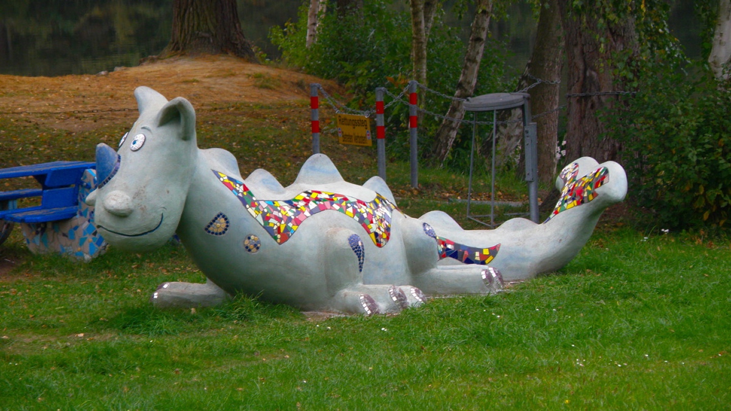 Zum Weg gibt es nicht viel zu schreiben, wir folgten der offiziellen Seerunde mit der Abkürzung am Bahndamm. Alles Weitere erzählen die Fotos. Für die Musik sorgte wieder einmal Wolfgang Mages, die Sachinformationen kamen von Karl Kirch und Markus Kurz, während meine Mutter für die poetischen Einwürfe zuständig war. Deshalb und auch aufgrund der Kunstwerke auf der westlichen Seeseite steht im Titel auch künstlerisch statt meditativ, denn wirkliche Meditation war nicht nur dank der überdurchschnittlich hohen Teilnehmerzahl weder im Detailprogramm noch möglich.
