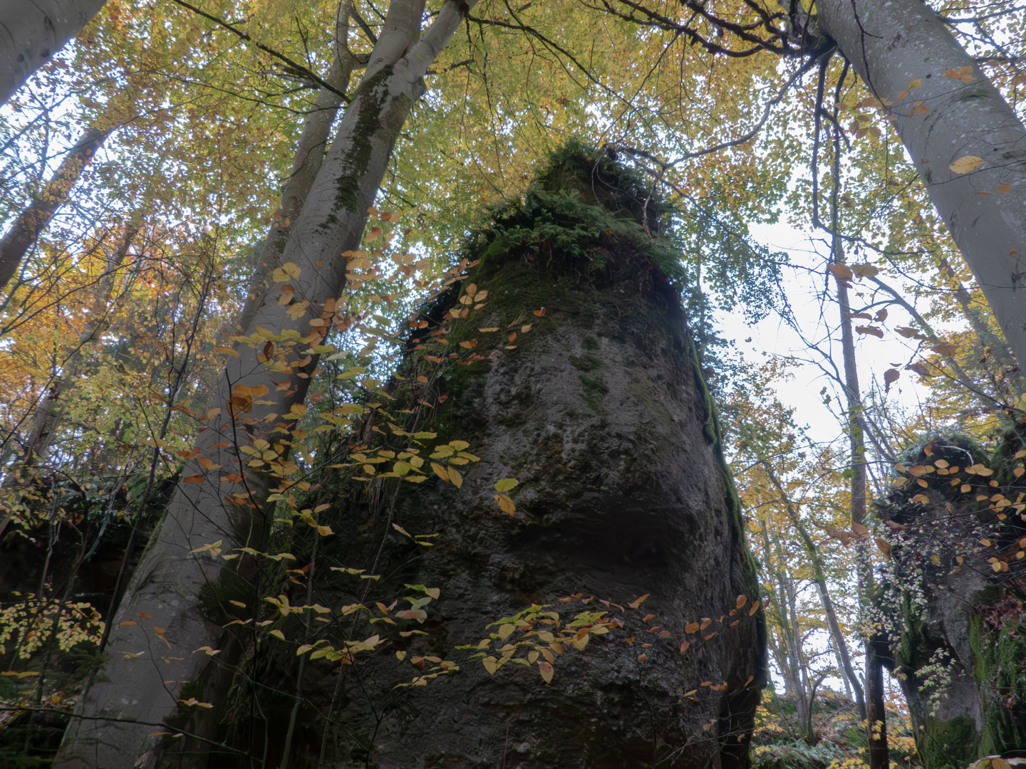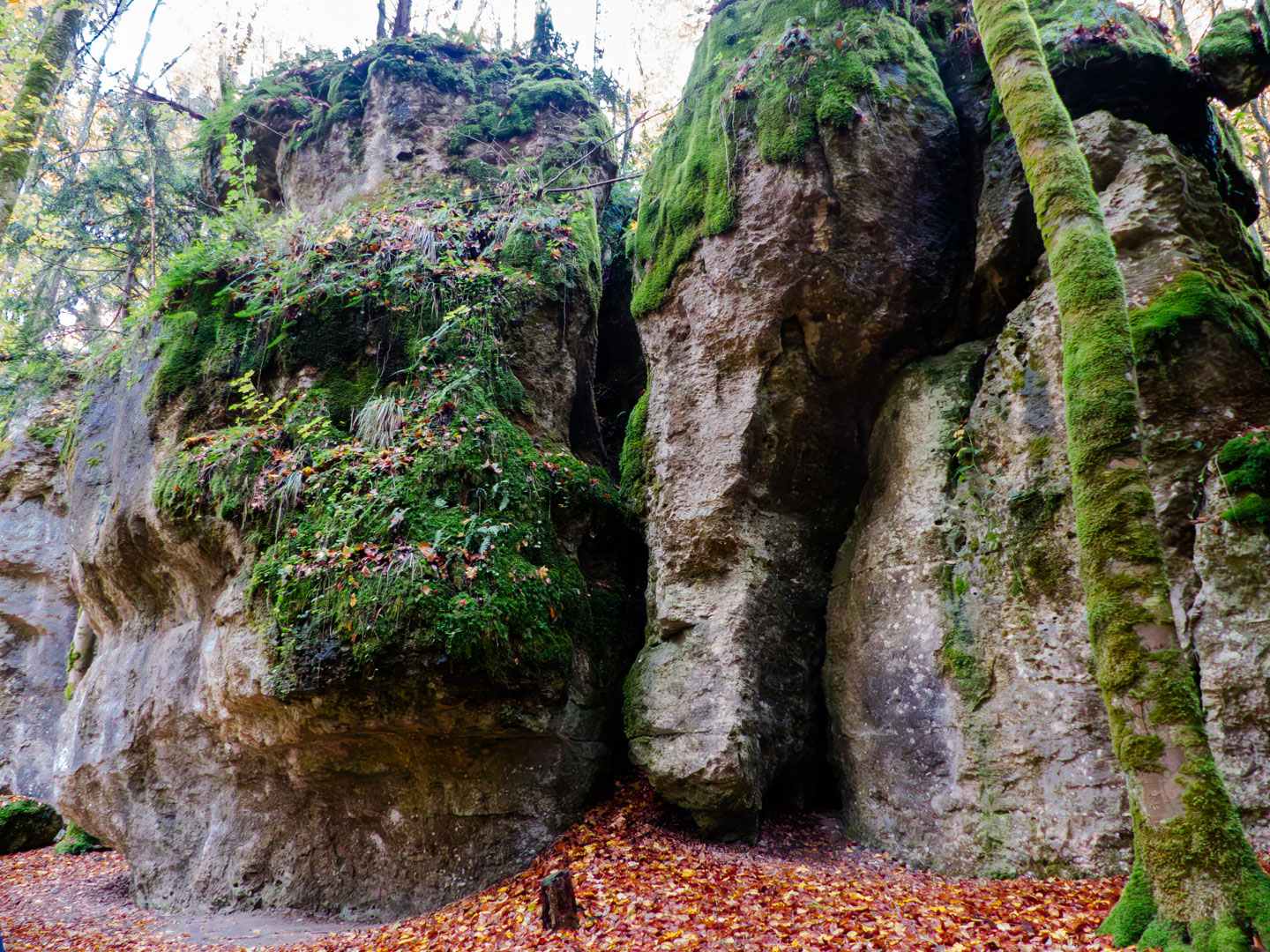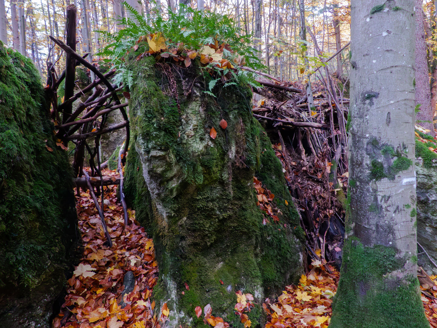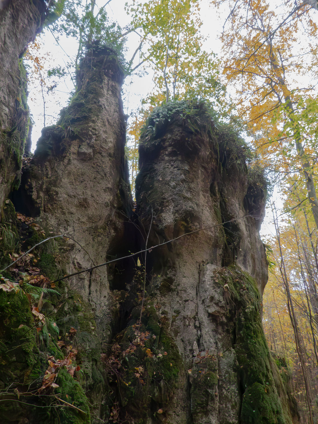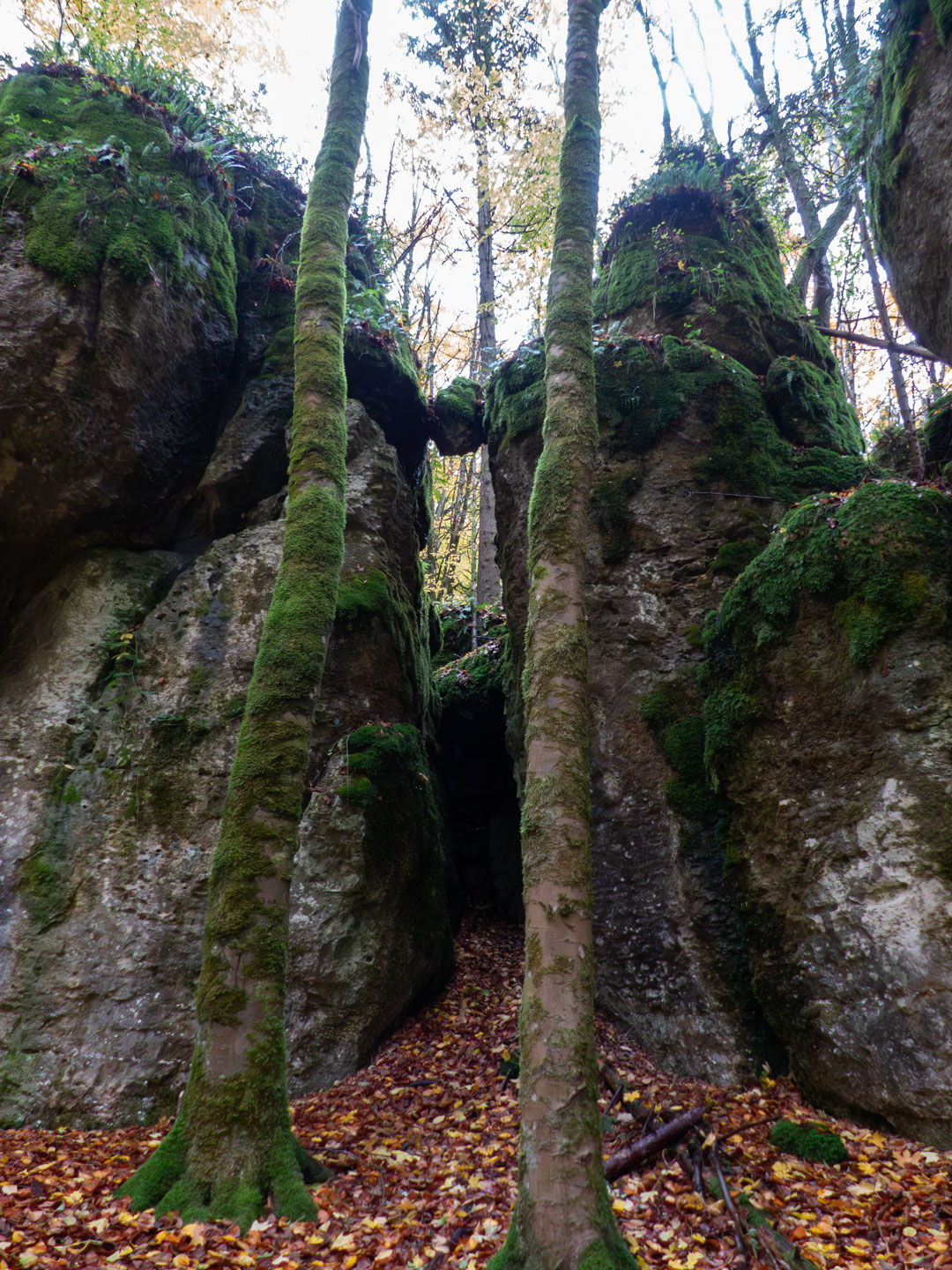 Insgesamt waren wir zu zweit aus Schwandorf und 17 Leute, darunter Gudrun, aus anderen Zweigvereinen. Das sind zwar weniger als sonst, aber für die Verhältnisse mehr als ordentlich. Da hat die Hohe Tanne halt doch gezogen. Außerdem ist das Gebiet einfach grandios, siehe frühere Berichte auf dieser Seite. Im Sackdillinger Felsenlabyrinth war es leider recht rutschig, da machten die Stöcke extrem Sinn. Wir sind aber unfallfrei durchgekommen. Was ich gar nicht mehr in Erinnerung hatte, war die Größe des Schäuferls, das kann aber daran liegen, dass ich bisher in der Hohen Tanne immer etwas Anderes gegessen habe. Jedenfalls ist es dort tatsächlich ein Schäuferl und keine ausgewachsene Schaufel, so dass ich mir vorher eine Kürbissuppe genehmigen konnte. Ich habs nicht bereut. Viel mehr mag ich jetzt gar nicht schreiben, weil sich Gudrun und ich einig waren, dass diese Runde mit kleinen Modifikationen bei besseren Lichtverhältnissen wiederholt werden muss und das ja bei zu erwartenden 350 Fotos von mir (plus 200 von Gudrun) einen weiteren Bericht geben wird. Bleibt noch der Dank an Ursa für Organisation und Führung und der Hinweis auf die Bildergalerie.
