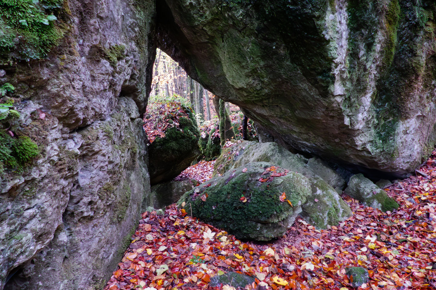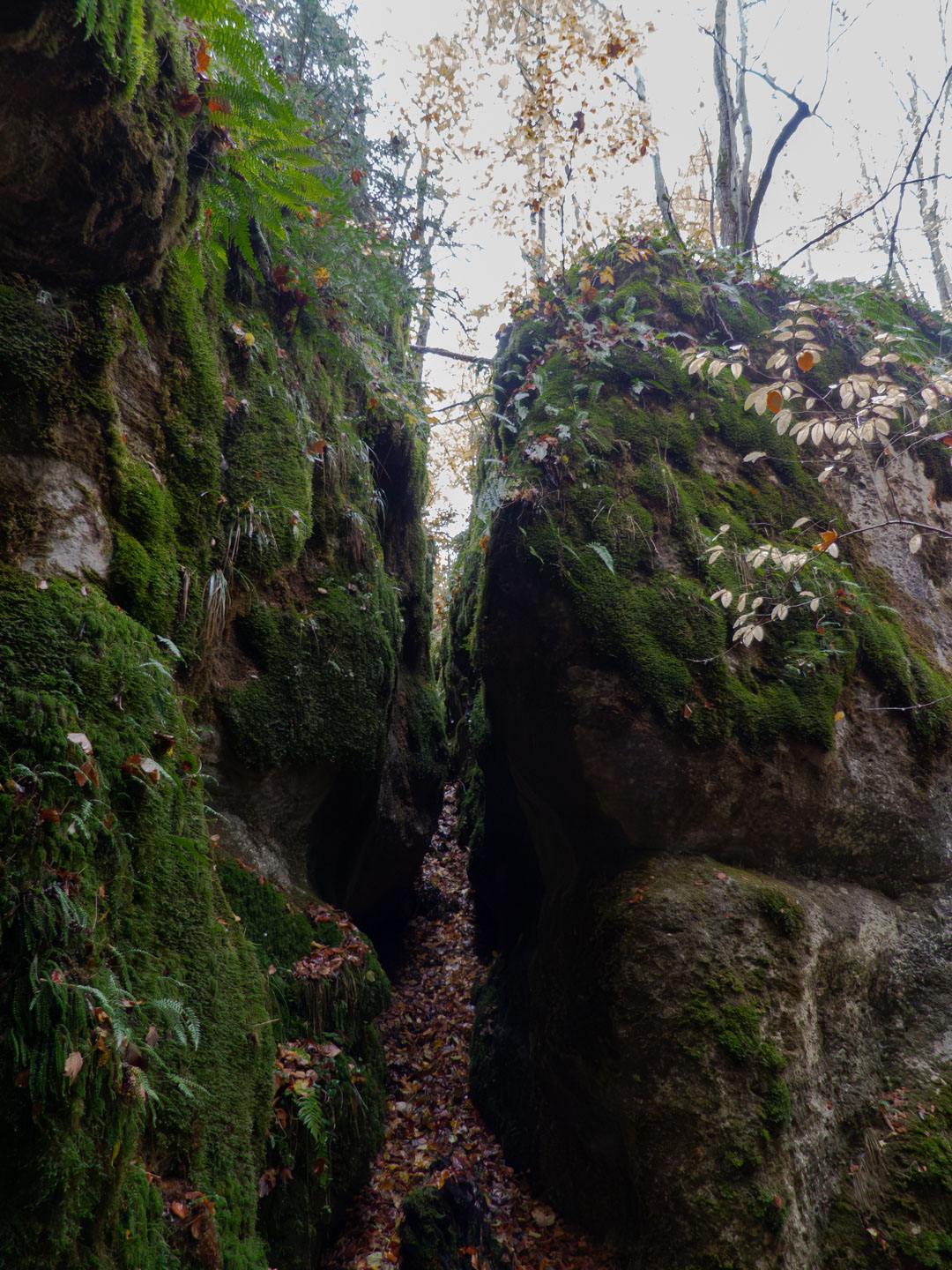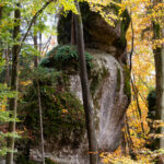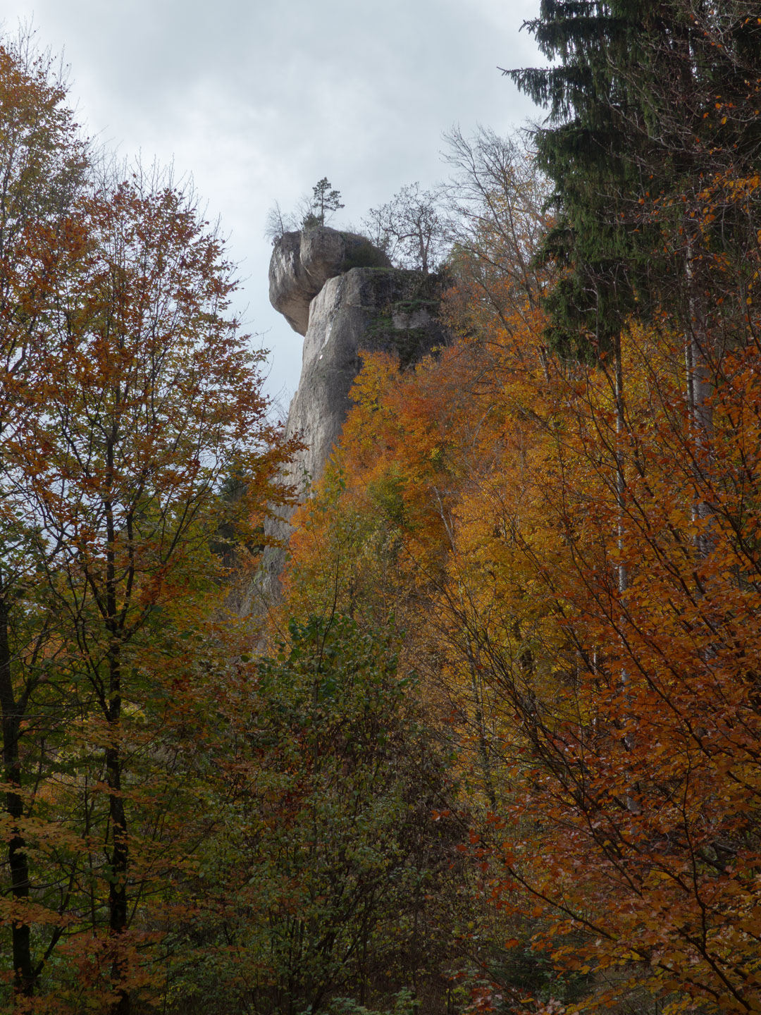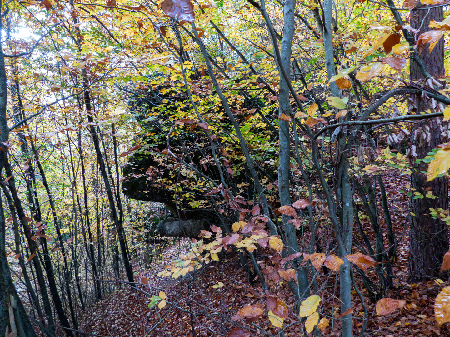 Insgesamt waren wir zu zweit aus Schwandorf und 17 Leute, darunter Gudrun, aus anderen Zweigvereinen. Das sind zwar weniger als sonst, aber für die Verhältnisse mehr als ordentlich. Da hat die Hohe Tanne halt doch gezogen. Außerdem ist das Gebiet einfach grandios, siehe frühere Berichte auf dieser Seite. Im Sackdillinger Felsenlabyrinth war es leider recht rutschig, da machten die Stöcke extrem Sinn. Wir sind aber unfallfrei durchgekommen. Was ich gar nicht mehr in Erinnerung hatte, war die Größe des Schäuferls, das kann aber daran liegen, dass ich bisher in der Hohen Tanne immer etwas Anderes gegessen habe. Jedenfalls ist es dort tatsächlich ein Schäuferl und keine ausgewachsene Schaufel, so dass ich mir vorher eine Kürbissuppe genehmigen konnte. Ich habs nicht bereut. Viel mehr mag ich jetzt gar nicht schreiben, weil sich Gudrun und ich einig waren, dass diese Runde mit kleinen Modifikationen bei besseren Lichtverhältnissen wiederholt werden muss und das ja bei zu erwartenden 350 Fotos von mir (plus 200 von Gudrun) einen weiteren Bericht geben wird. Bleibt noch der Dank an Ursa für Organisation und Führung und der Hinweis auf die Bildergalerie.