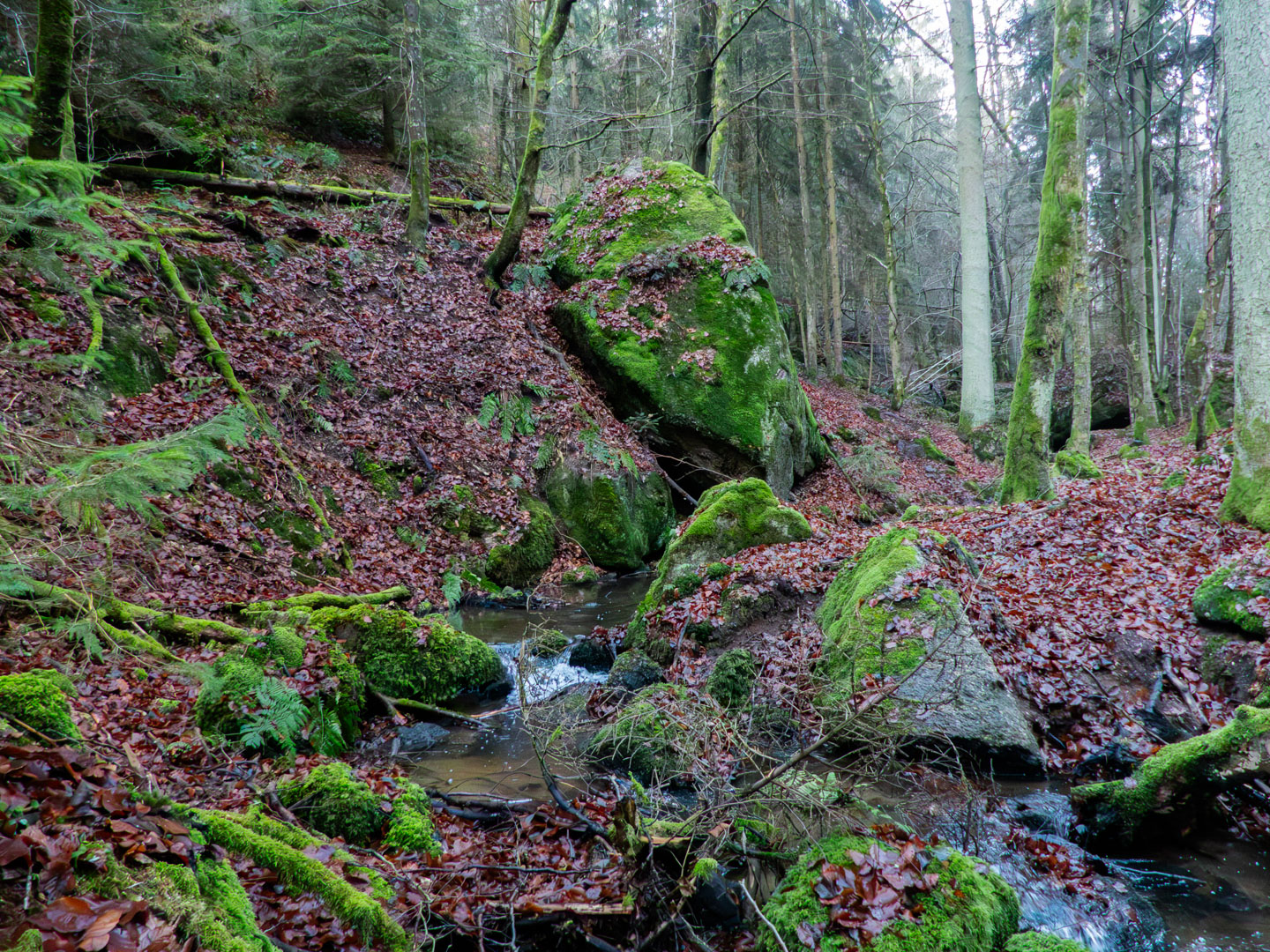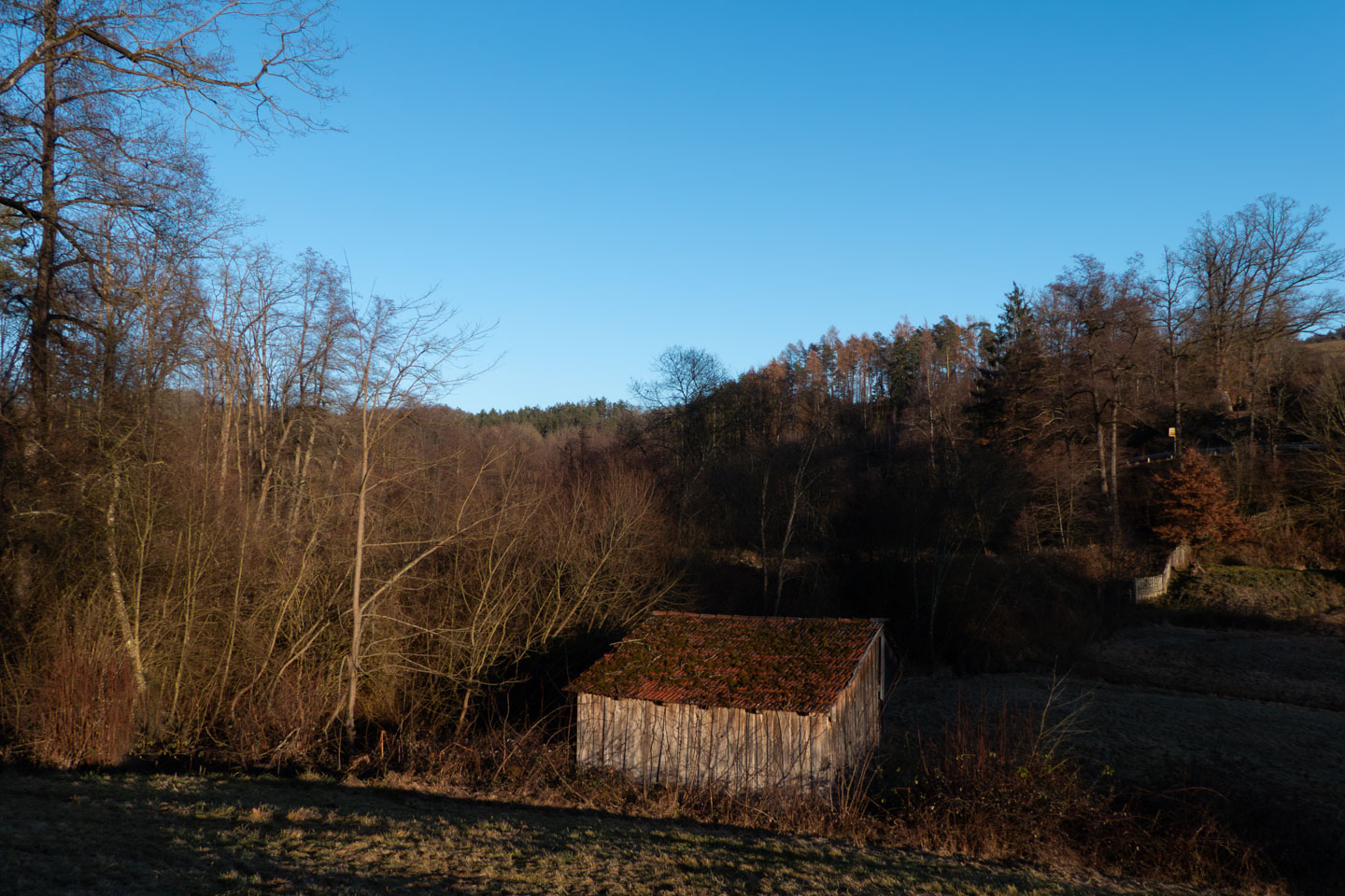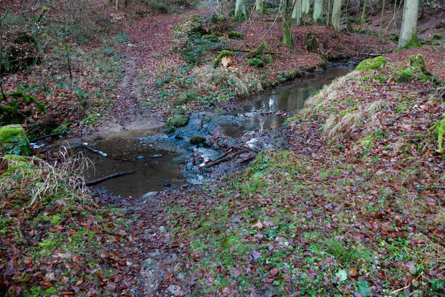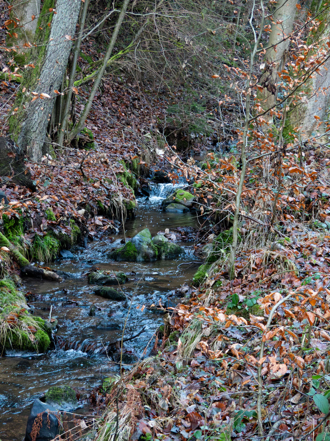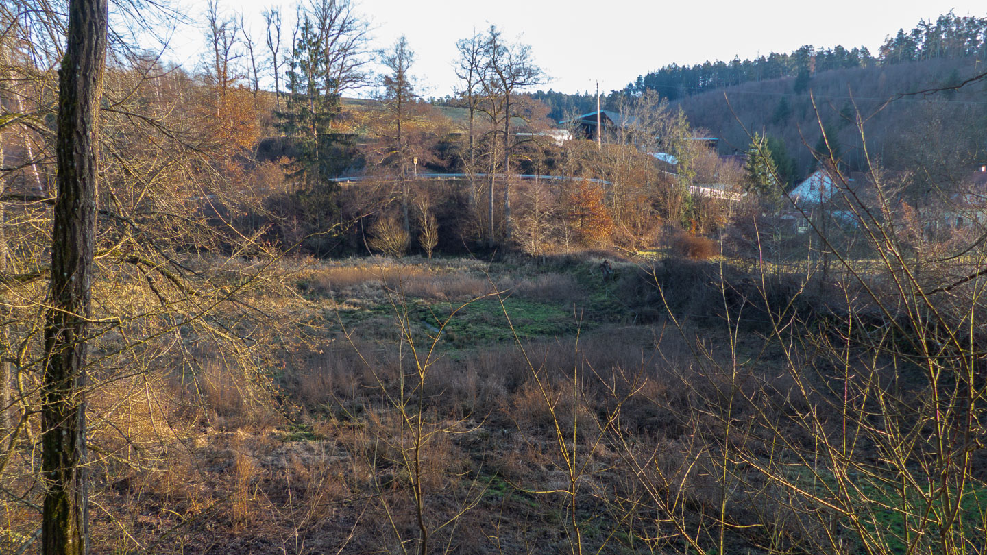 Hauptzweck der Runde war, den oberen Teil des Gambachtals mal gesehen und fotografiert zu haben, was auch gelungen ist. Die mittlere Furt ist dabei nicht ganz einfach, zumindest, wenn man keine nassen Schuhe bekommen will. Und die Eichelmühle habe ich nur auf der historischen Karte im Bayernatlas entdeckt, im Gelände sieht man leider nichts mehr davon. Dafür ist der Teich oberhalb von Löchl im Bayernatlas noch als wasserführend vermerkt, die tatsächliche Wassermenge kann den Bildern bzw. einem Bild entnommen werden. Und das nehme ich heute als Überleitung zur Galerie.