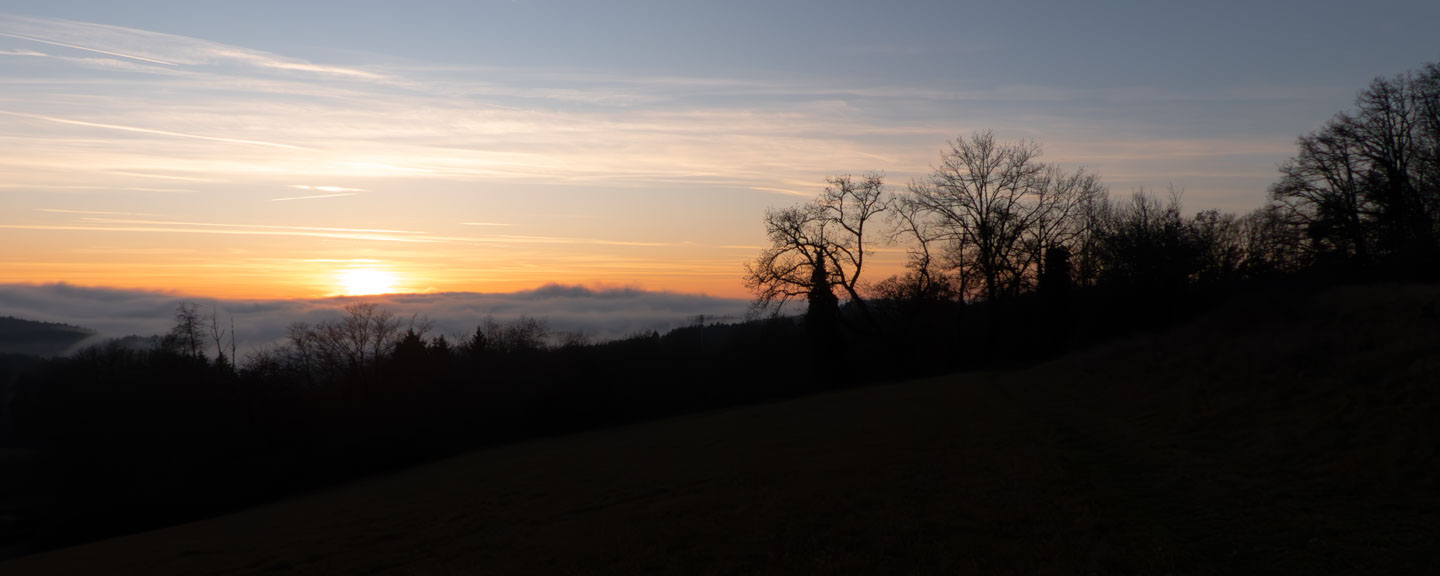 Eigentlich schreibe ich von Spaziergängen keine Tourenberichte mehr. Meistens sind es ja auch relativ wenige Fotos, die ich dann im Bedarfsfall direkt auf Facebook veröffentliche. Heute ist aber eine Ausnahme, denn gegen Ende der Runde tappte ich voll nicht in eine Falle, sondern einen richtig grandiosen Sonnenuntergang. Deswegen wurde die Zahl der Fotos dreistellig, und damit habe ich keine Ausrede mehr, keinen Bericht zu schreiben.